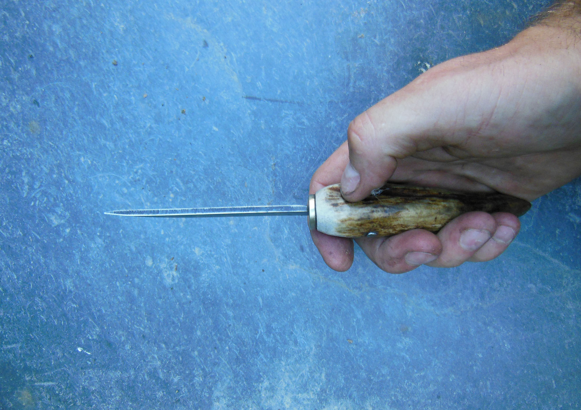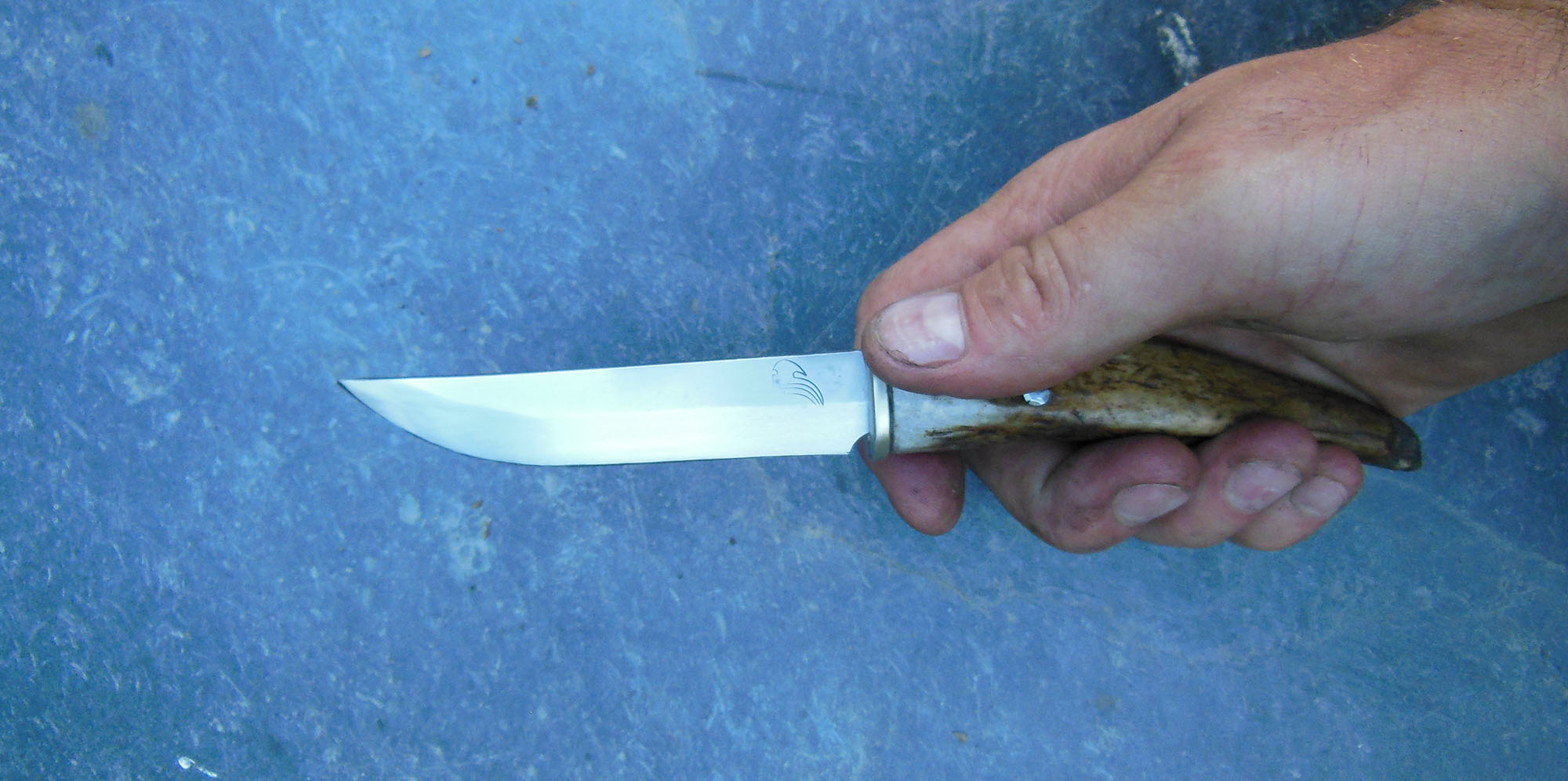 Manche en Elan - Lame de 10cm forgée en acier XC90 - Epaisseur env 3mm - Garde en maillechort.