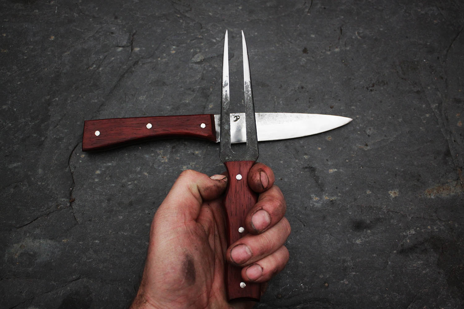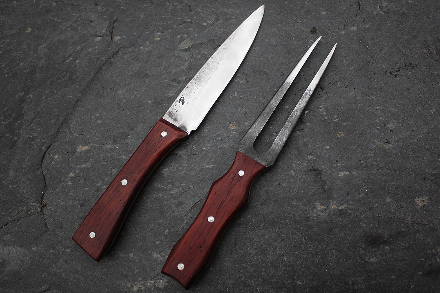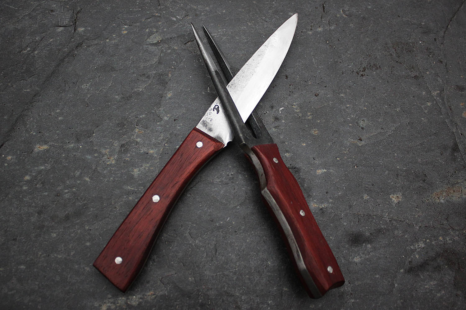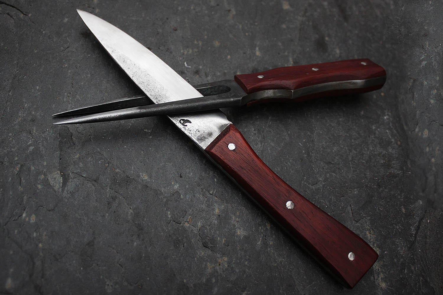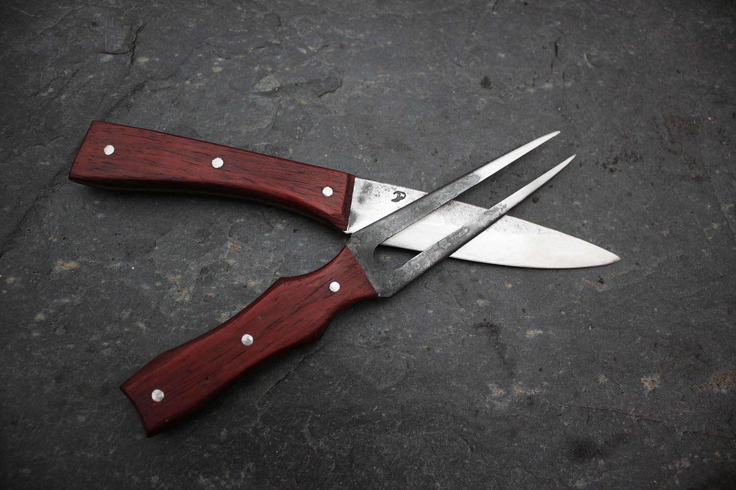 Ensemble de cuisine pour les passionnés de rustique; Lame de 13cm en XC130, manche en padouk imputrescible.