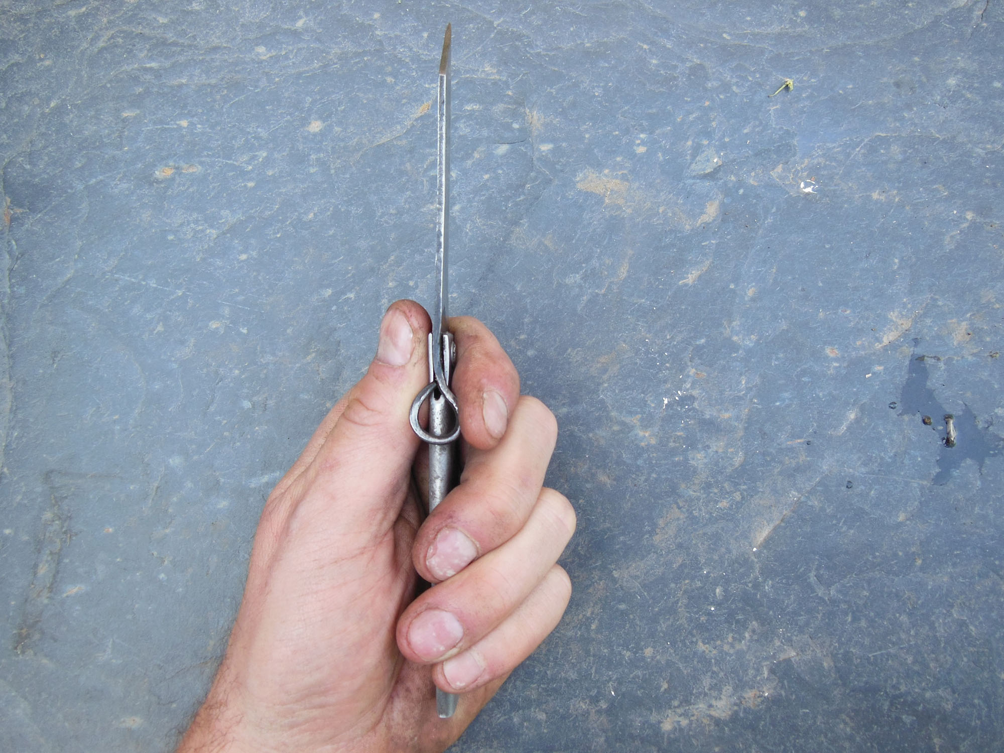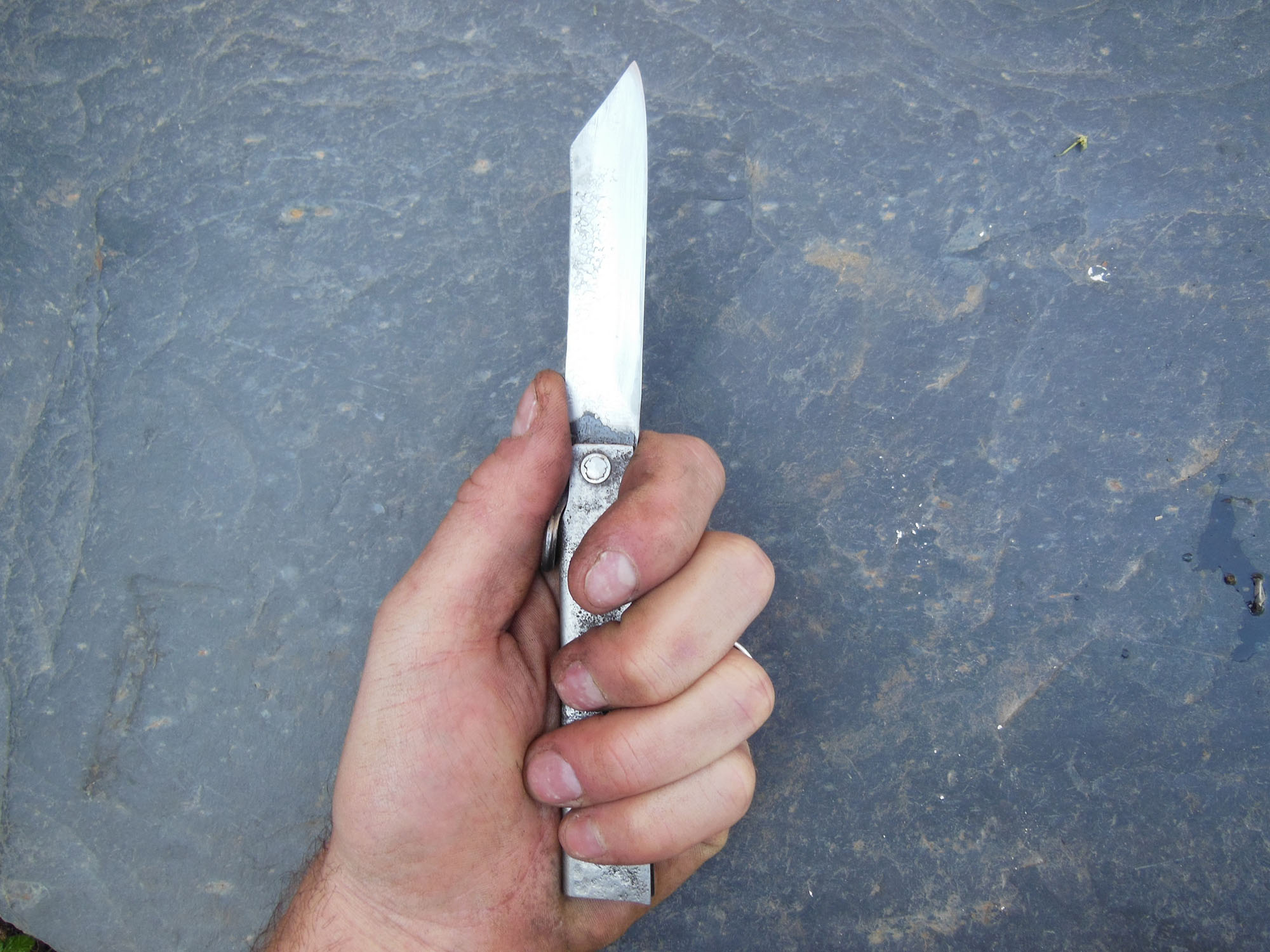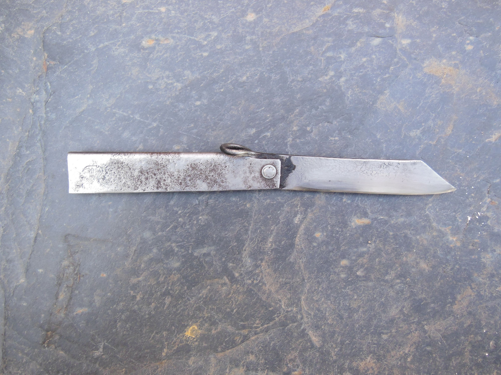 Manche en acier brut de 10cm - Lame de 9cm forgée en acier XC80 - Epaisseur env 2mm - Axe en Stub.