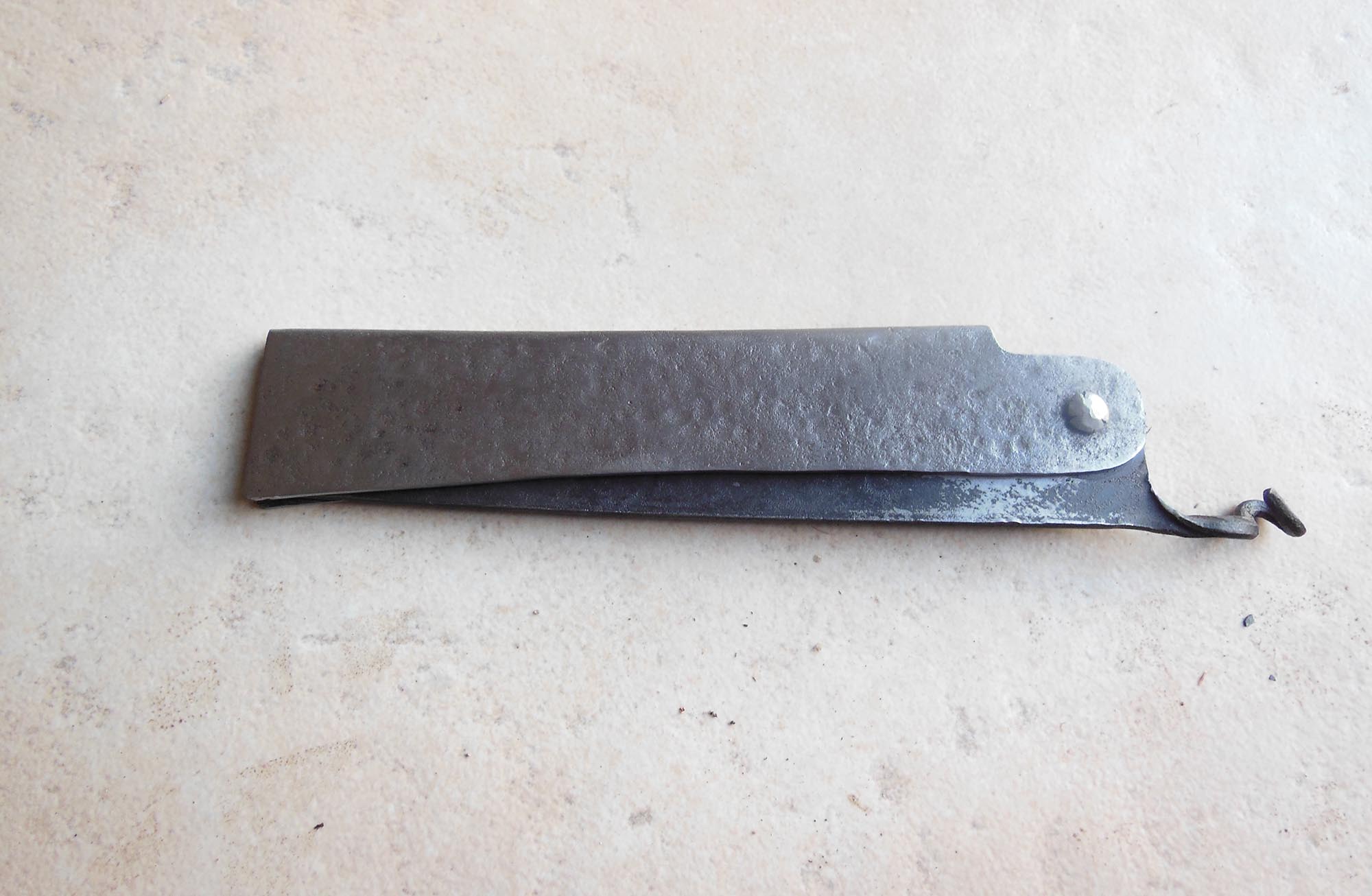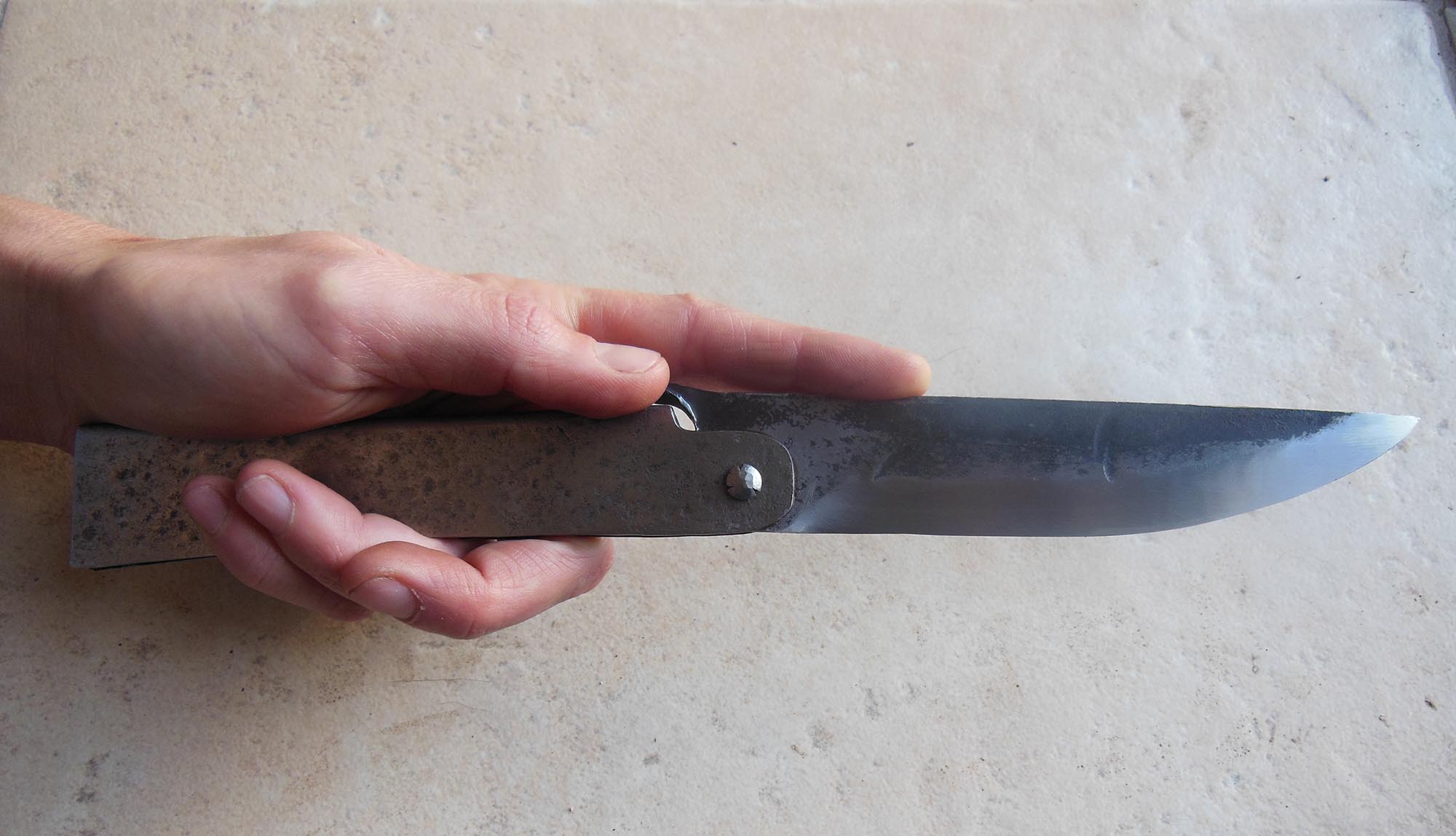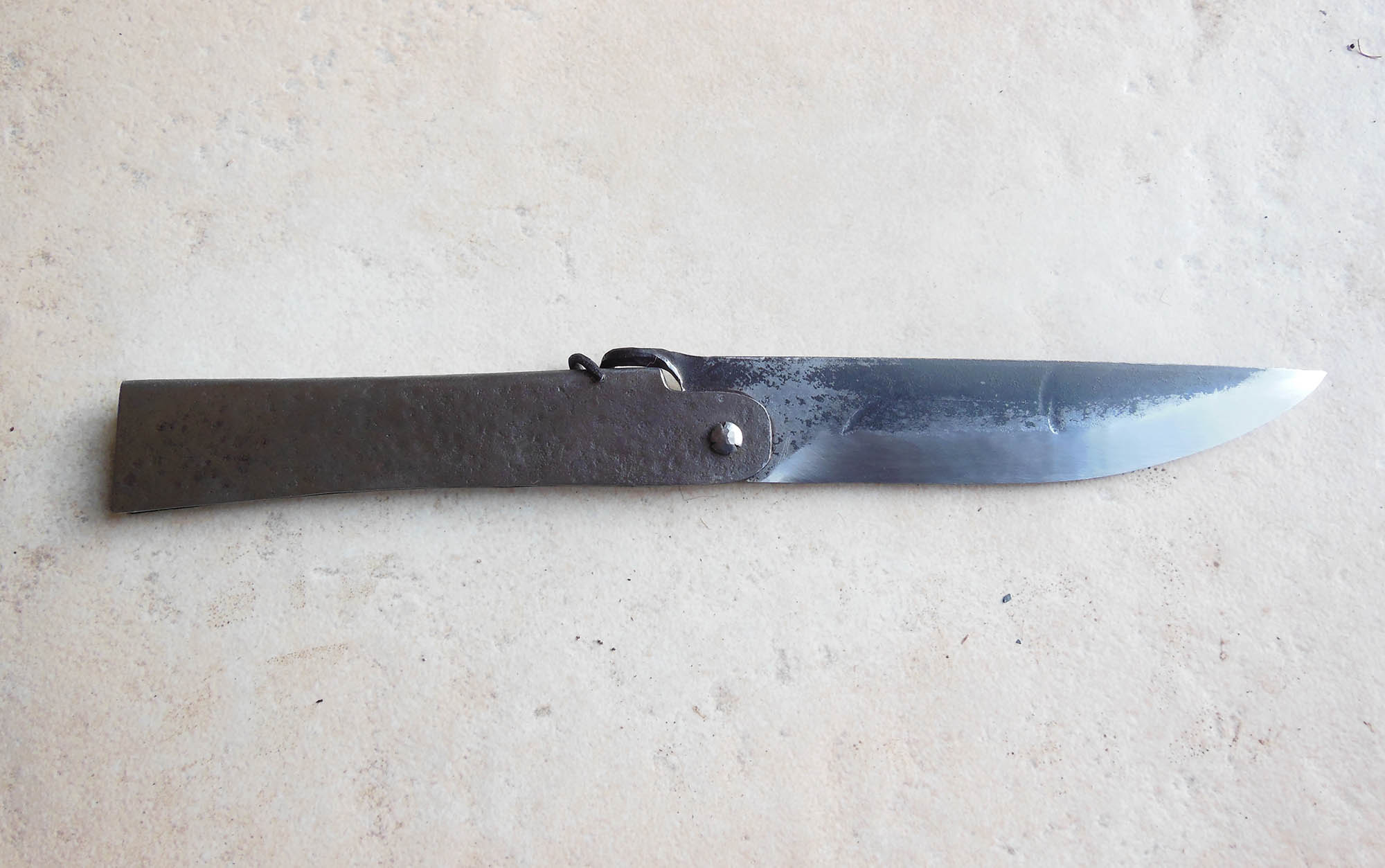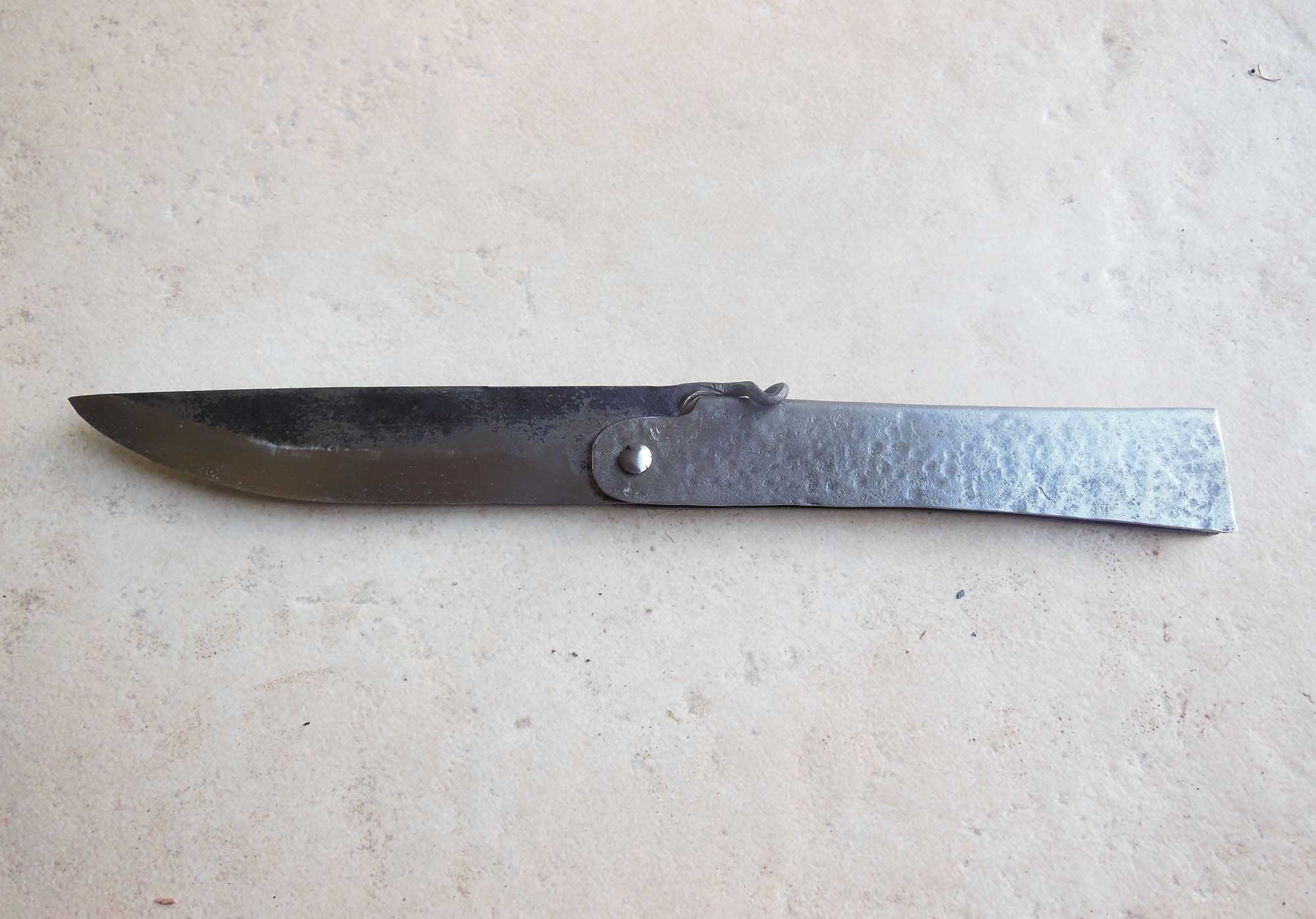 Manche en acier brut de 13cm - Lame de 12cm forgée en acier XC80 - Epaisseur env 3mm - Axe en Stub.