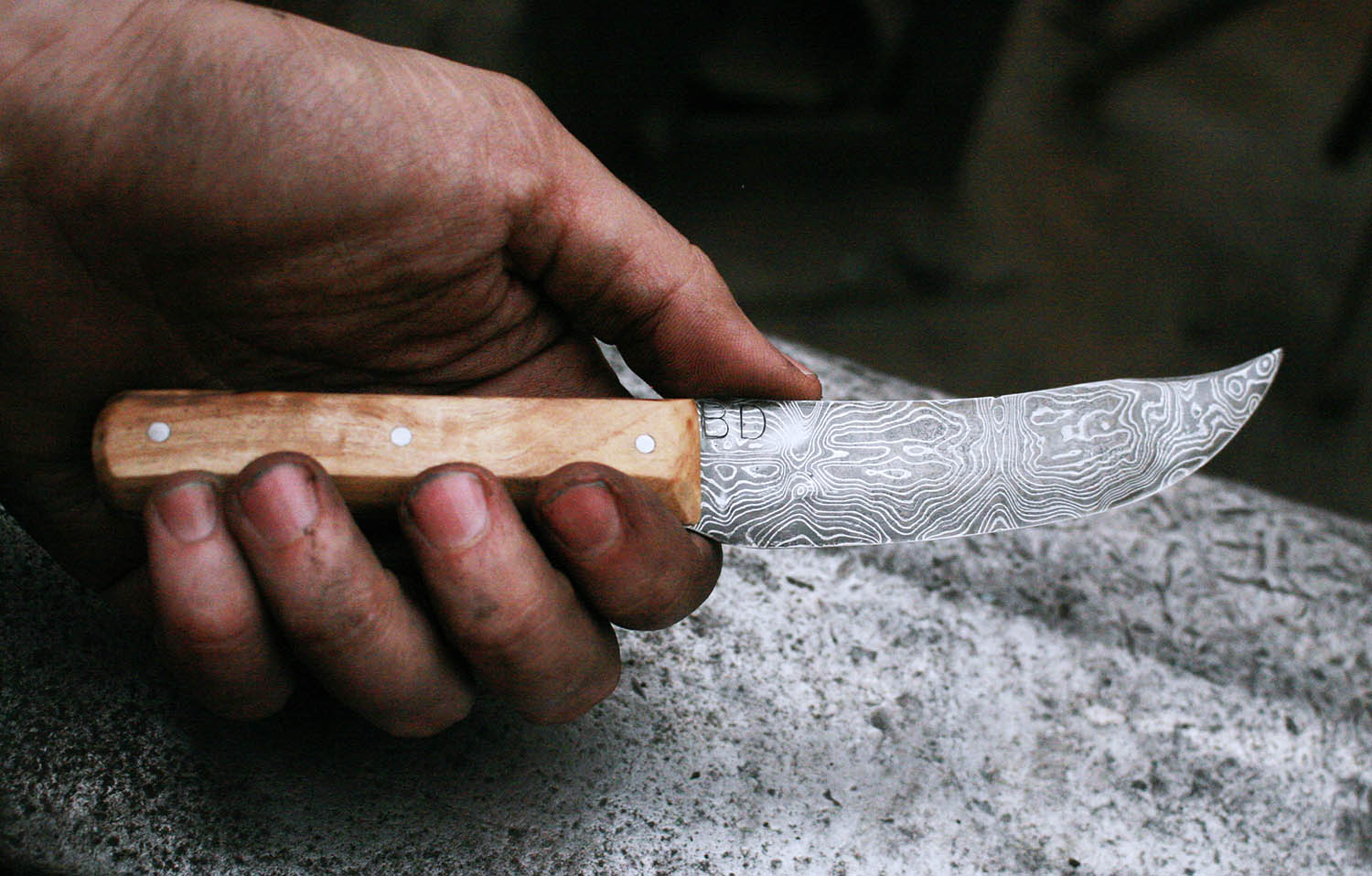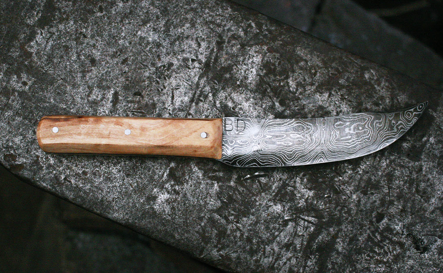 lame de 14cm - manche de 12cm - Acier XC75 et 15n20 - 112couches