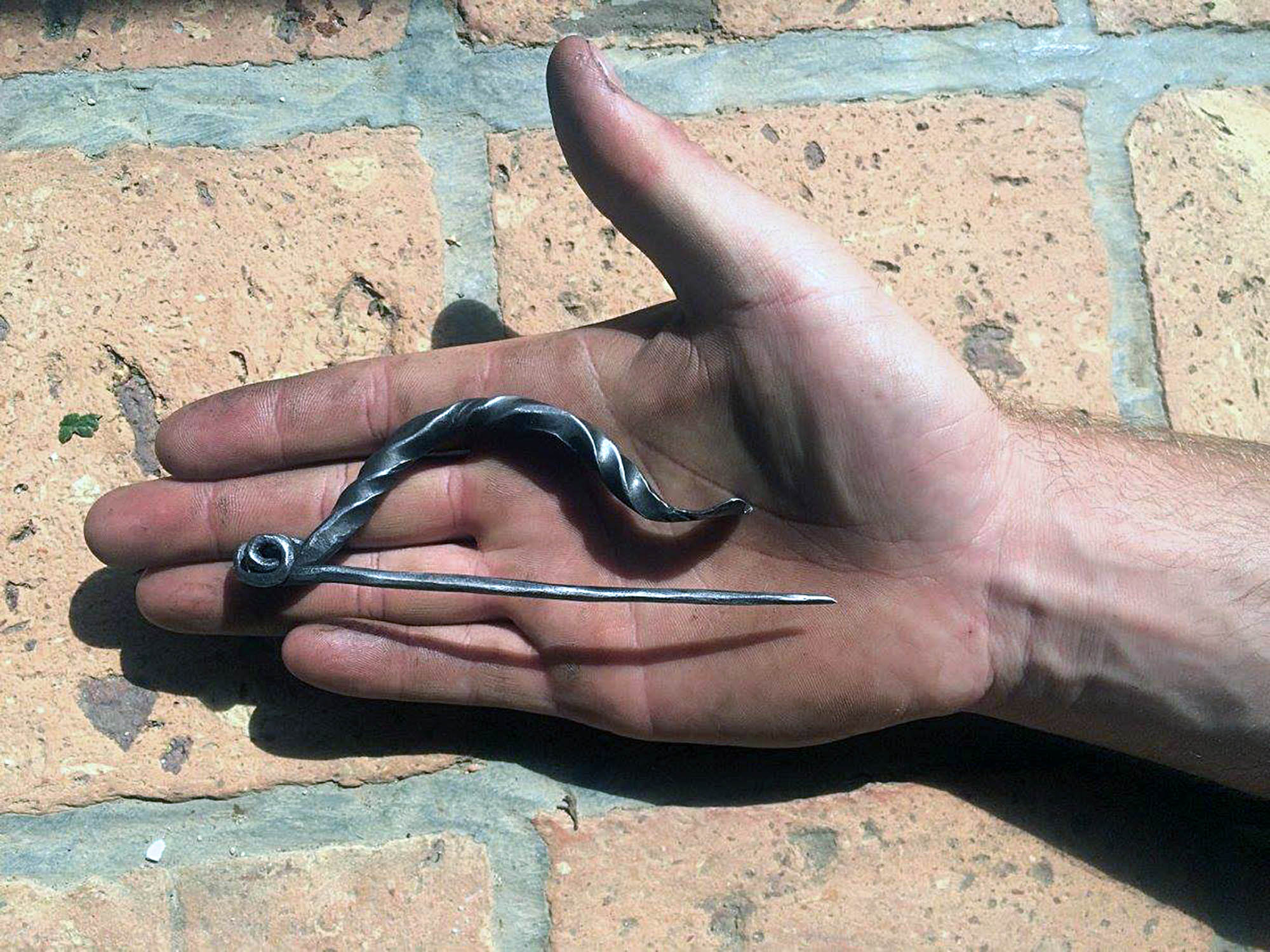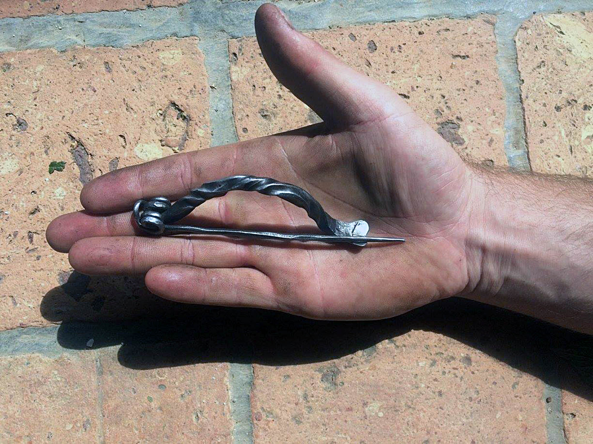 Fibule médiévale forgée d'une pièce avec effet ressort - finition brute.