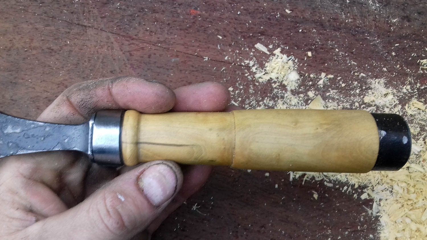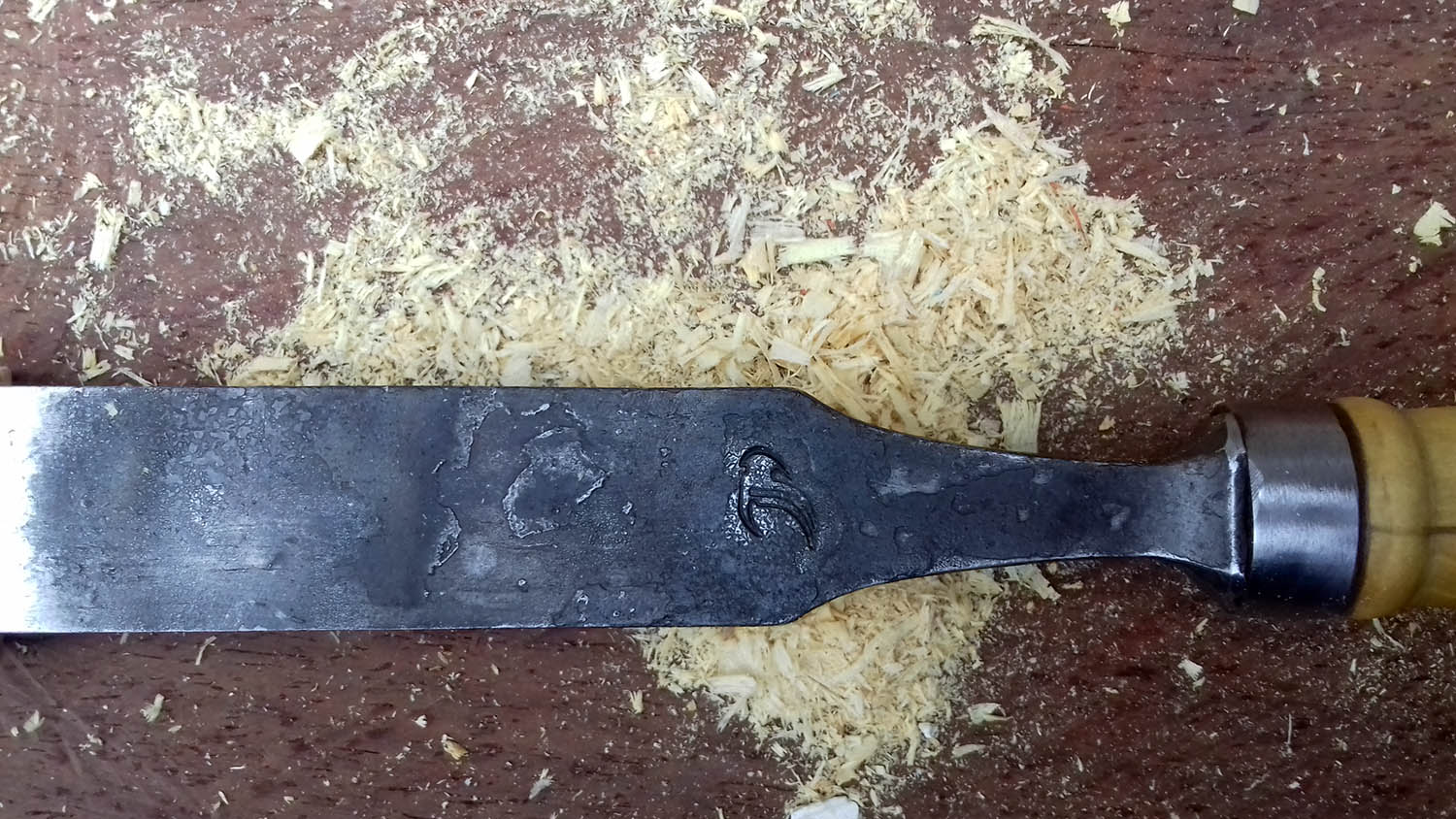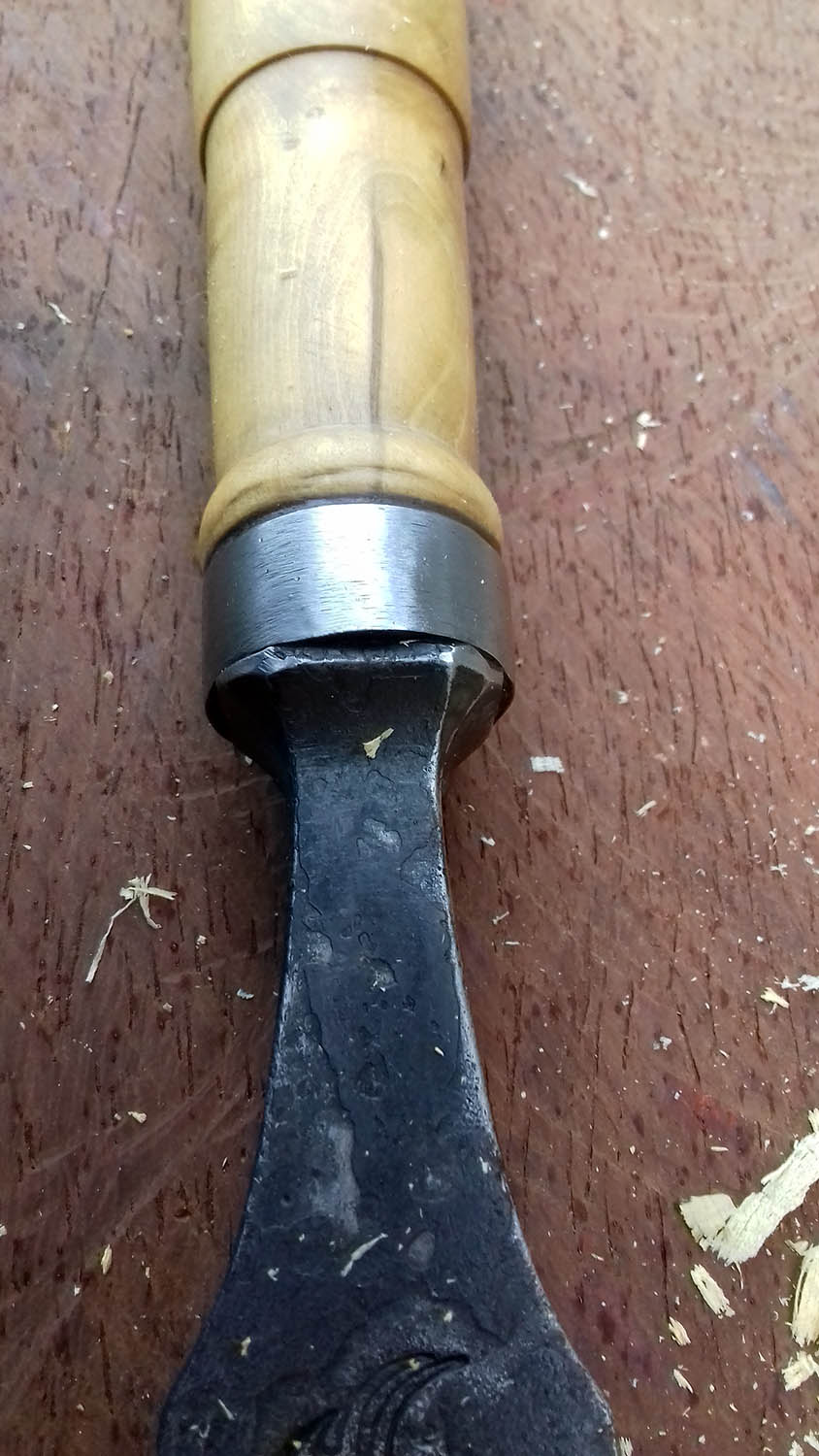 Acier XC130 - Manche en buis tourné - bague acier - montage traditionnel avec emmanchement à chaud de la soie carrée.