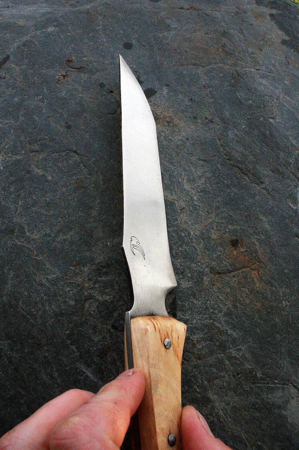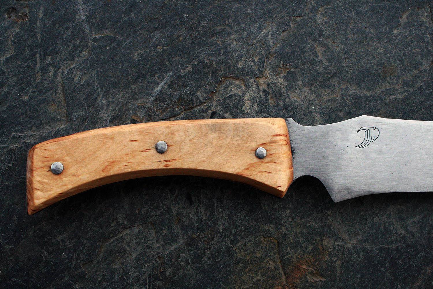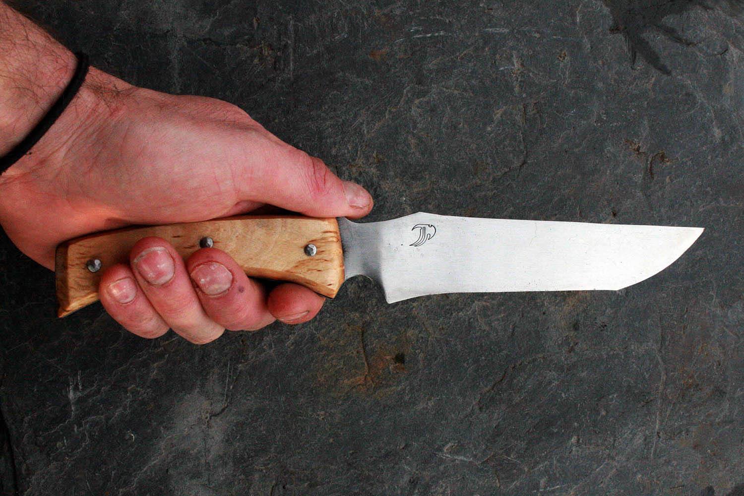 Manche de 13cm en bouleau - lame de 15 en xc80 - épaisseur de 1.5mm au milieu de la lame !!! - rivet acier