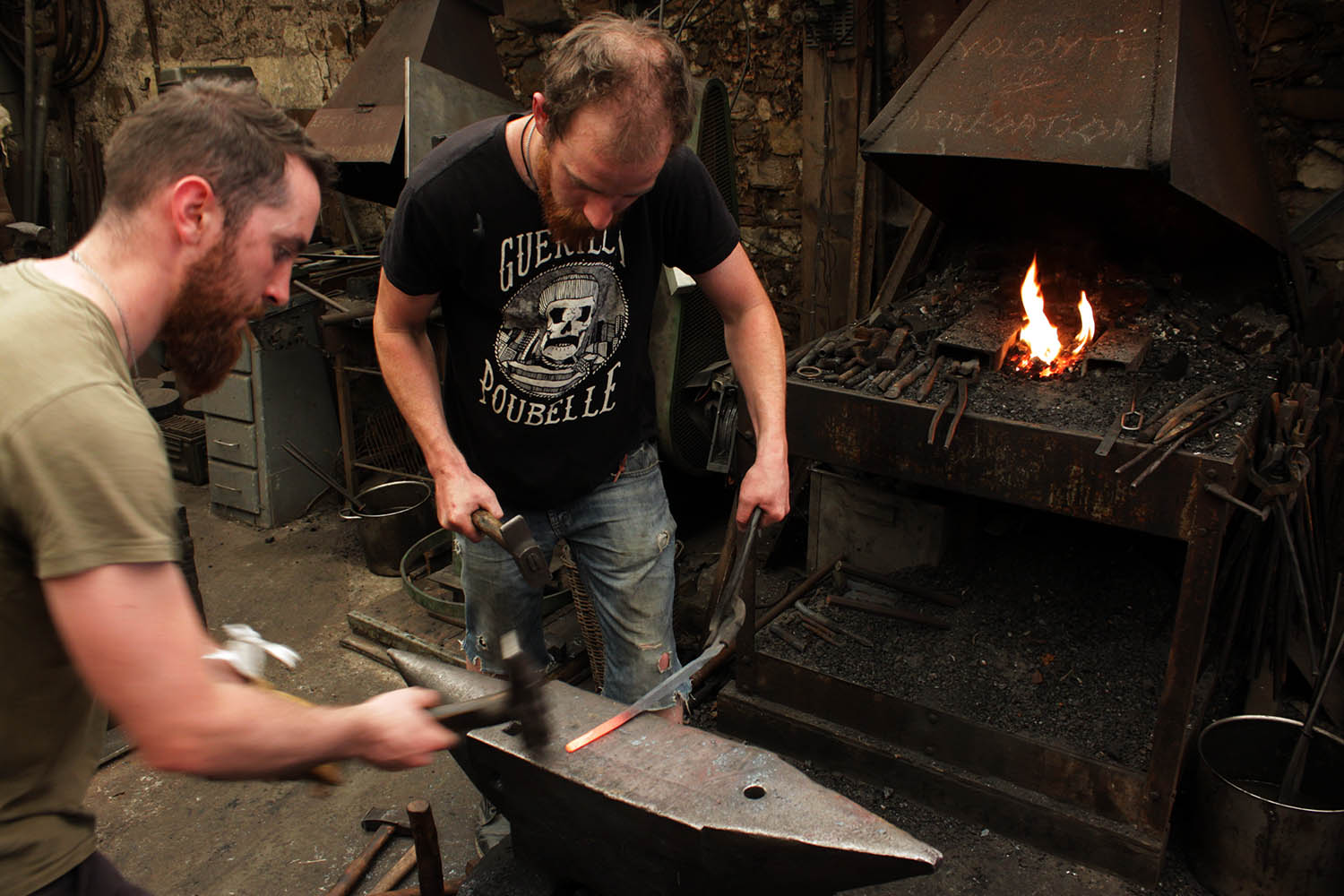 Voila 2 copains spécialistes de la découpe qui sont passés user les enclumes et les marteaux pour un bon stage de forge.