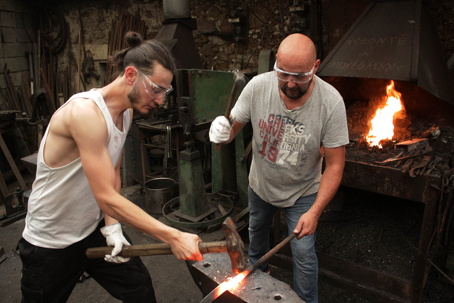 Père et fils pour un stage de forge comme on les aime; regardez ces 2 magnifiques couteaux brut.