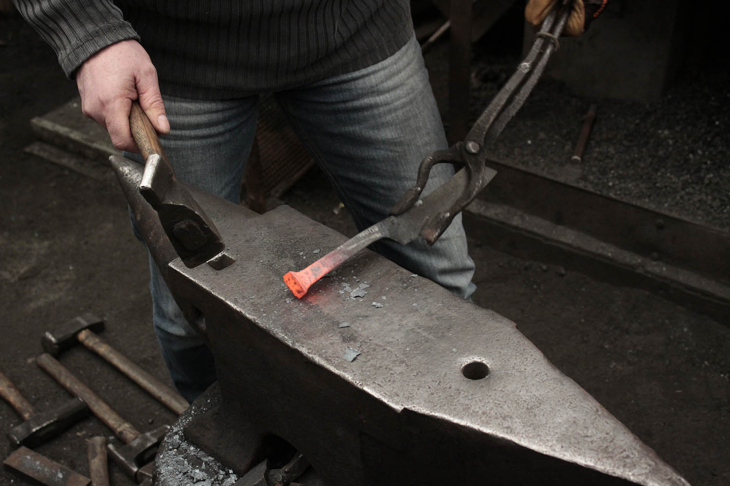 Passionné de reconstitution, de spectacle et d'équitation, ce jeune forgeron est venu faire son premier stage de forge pour réaliser ce gros couteau brut de forge.