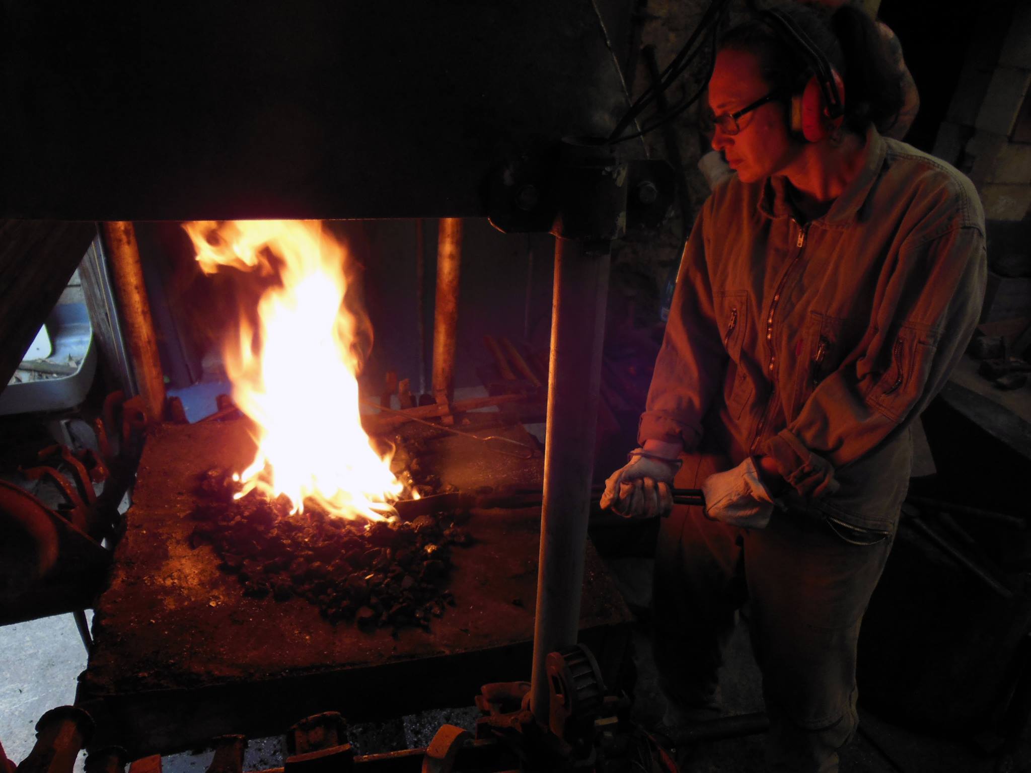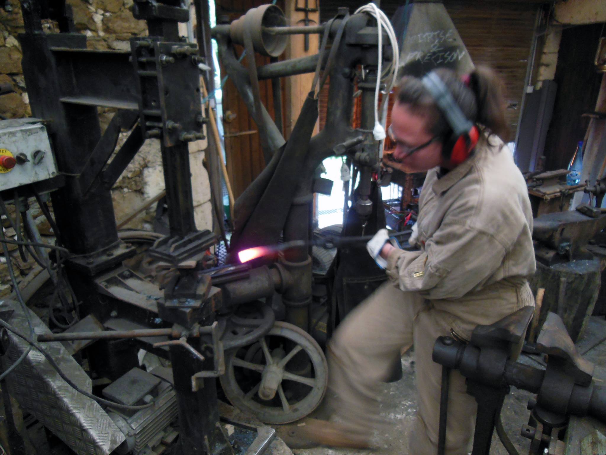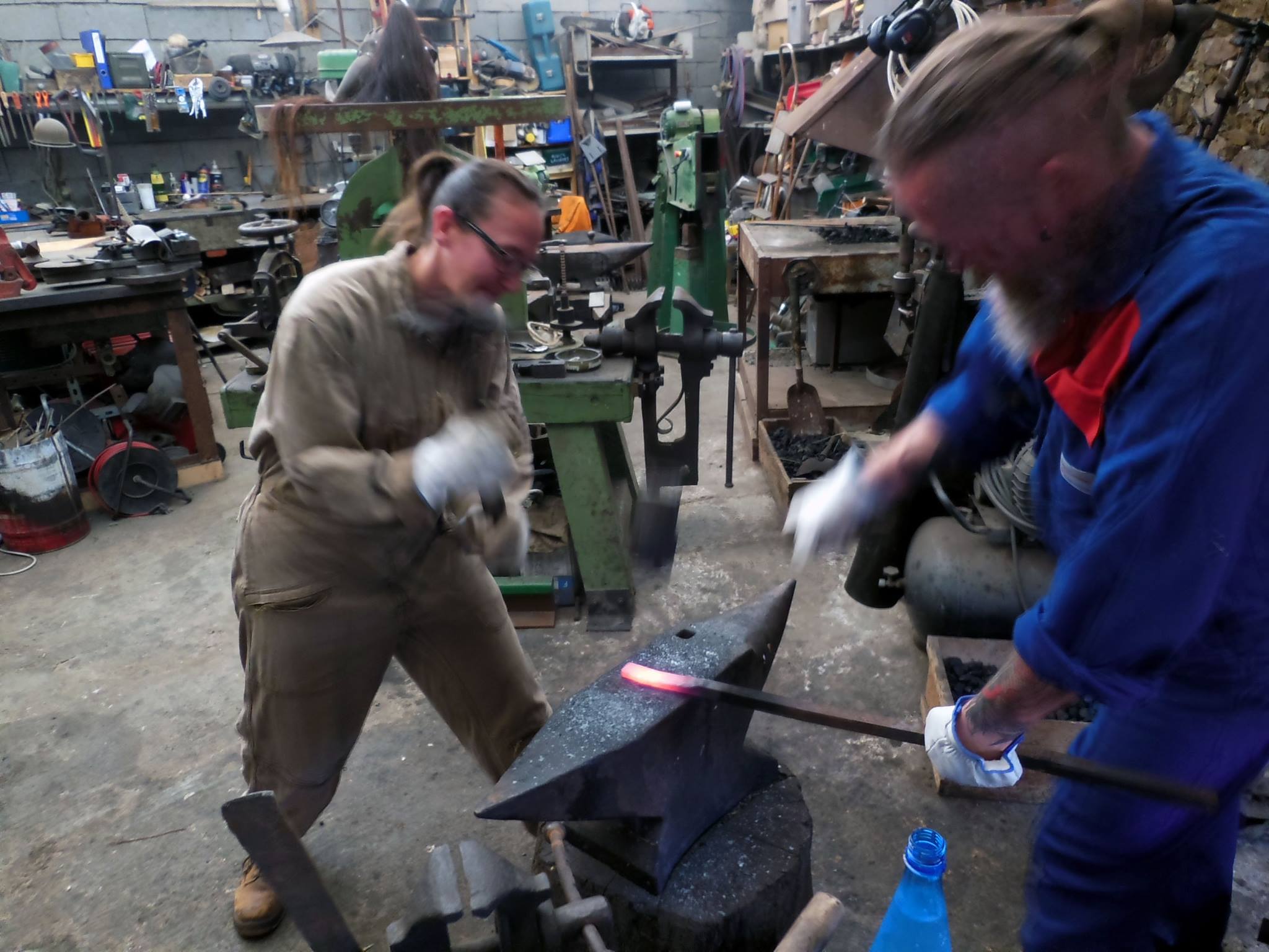 Madame est venue avec une grande expérience des ateliers et des machines et voulait s'essayer au marteau et au feu. Merci à son monssieur pour le cadeau ! C'est un peu grace à eux que j'ai commencé les stages