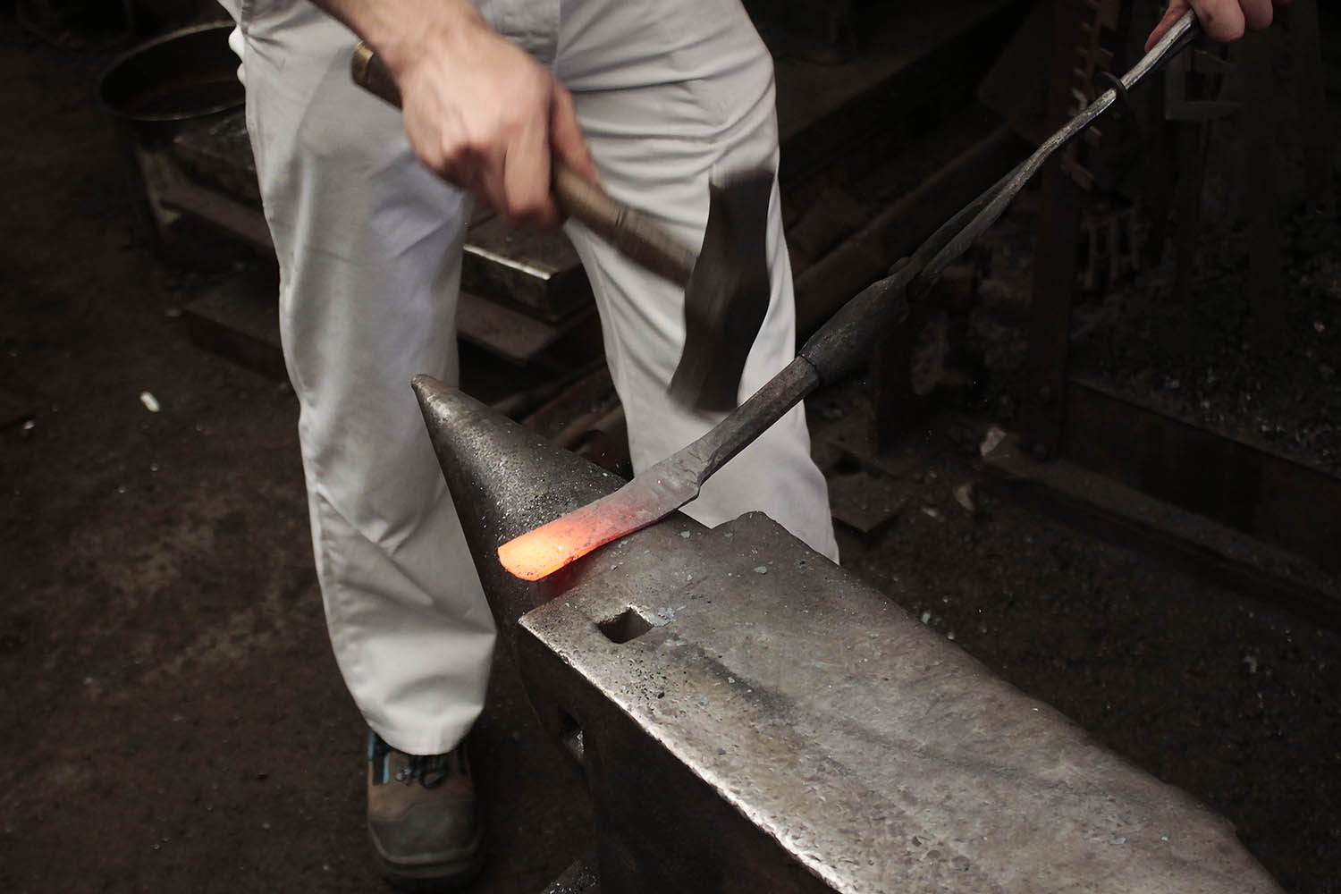Au programme, un énorme couteau forgé tout en courbe et en classe. Bien joué !