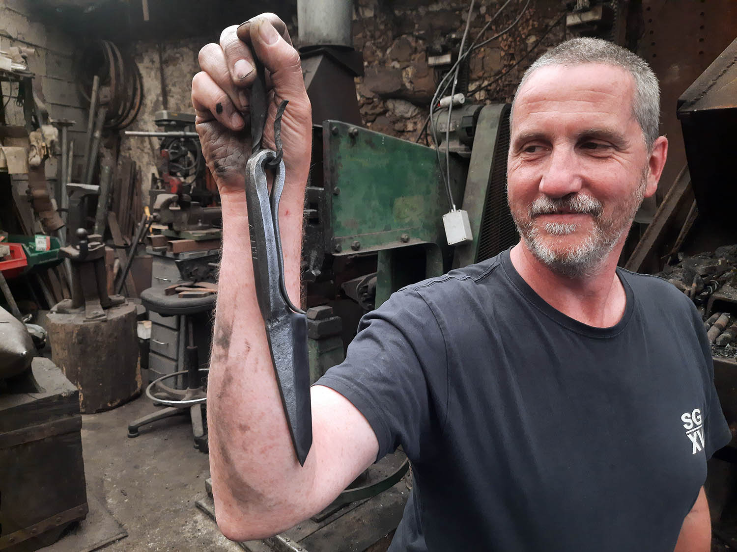 David est passé se faire un bon délire à l'atelier. Un regal de forge et de complicité pour sortir cette magnifique lame selon ses plans.