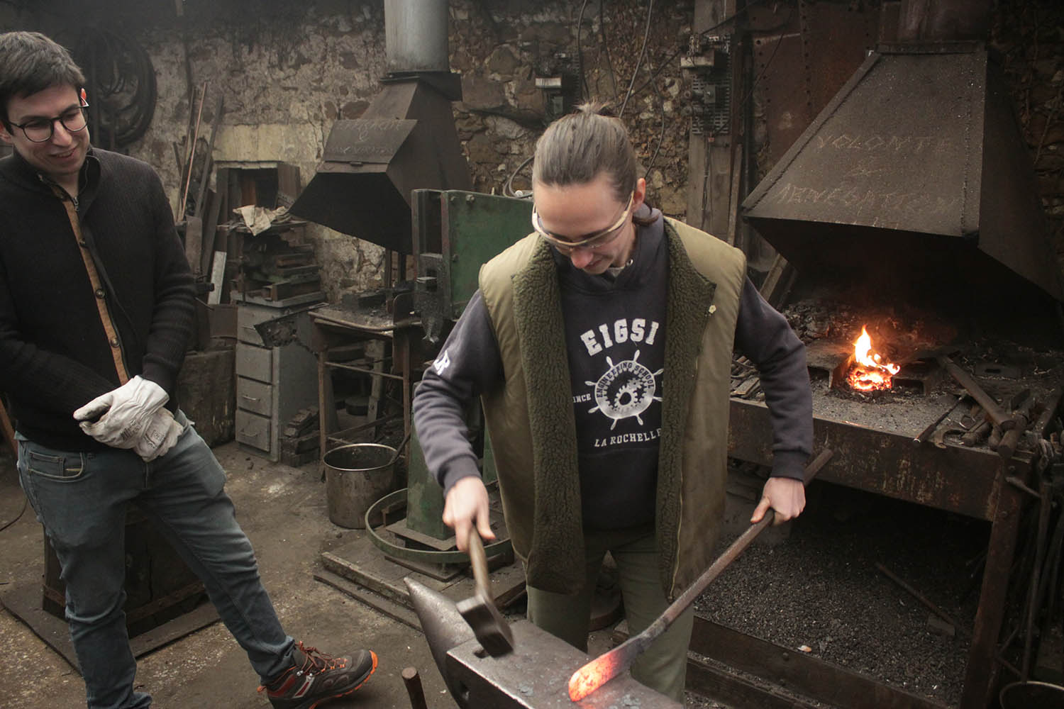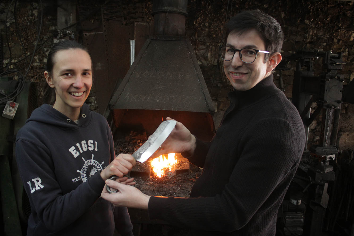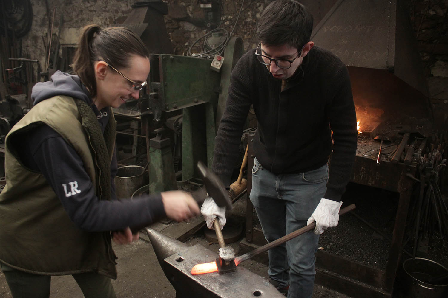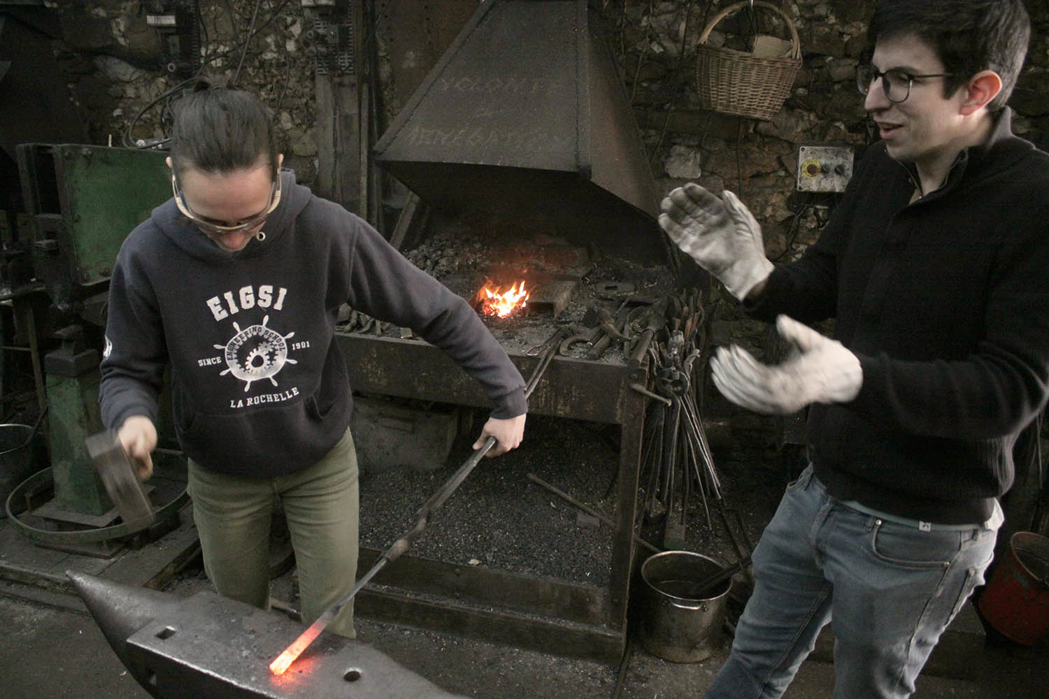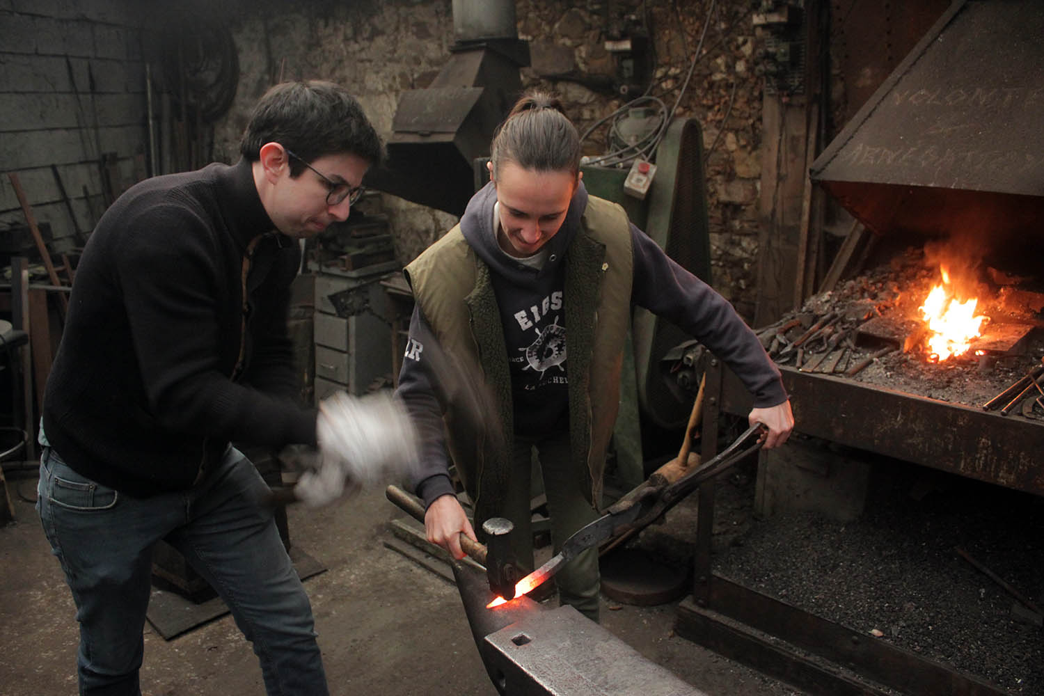 Marie voulait essayer la forge, alors Raphaël lui a offert ce moment unique. Beau stage de forge et beau brut de forge et super partage !
