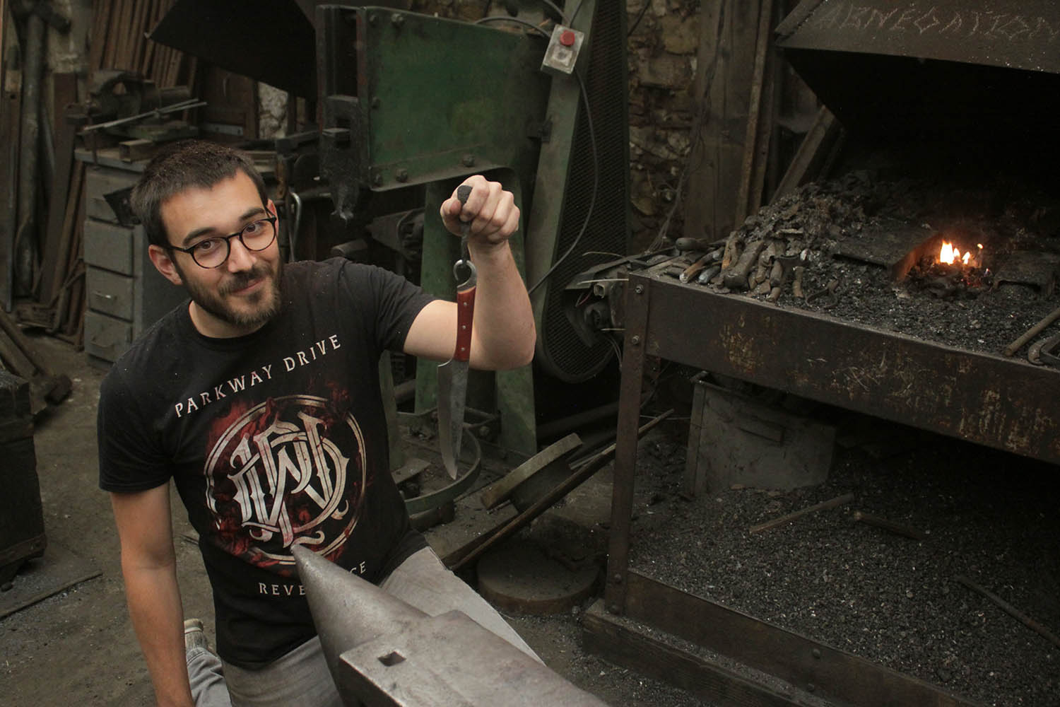 Medecin urgentiste et passionné, Martin a eu comme cadeau de venir jouer avec le feu et les enclumes. Du beau travail sur ce couteau brut de forge.