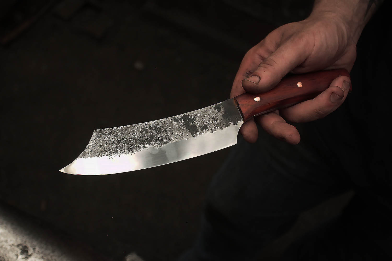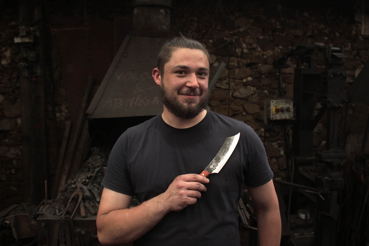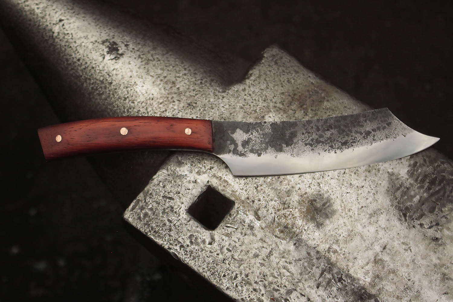 Paul a œuvré sur ce couteau de cuisine avec manche en padouk. Super stage de forge et superbe couteau. Bien joué l'ami.