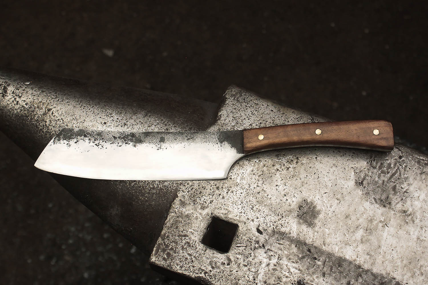 Et voila le résultat. 2 beaux couteaux forgés. Un de type santoku pour la cuisine de qualité et un de type drop-point plus pour le bushcraft. Un vrai régal. Et merci pour le cuir et le bois camarade :)