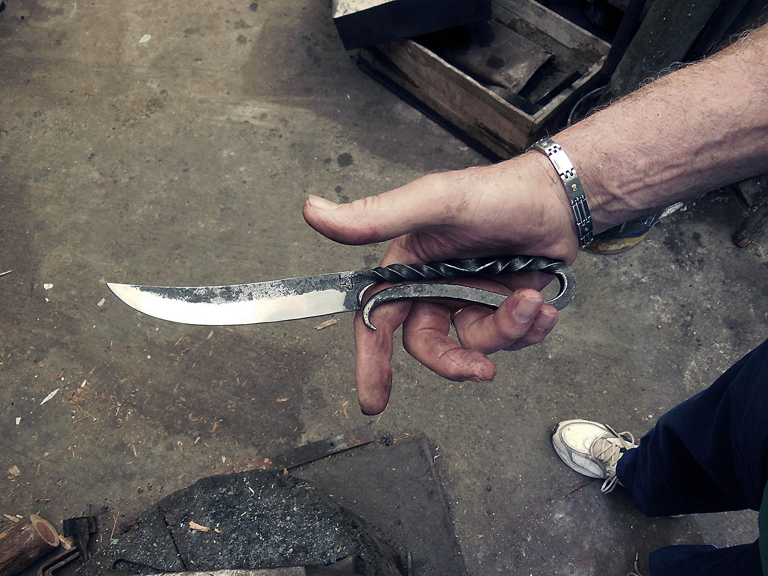 Jean est un retraité plein d'énergie, et de par son expérience d'affuteur, je peux dire que je ne faisais pas le fière que je l'ai vu débarquer à la forge. Quelque coup de marteau plus tard et hop, la complicité était la et j'ai découvert un gars super sympa. Bien joué l'ami !!!