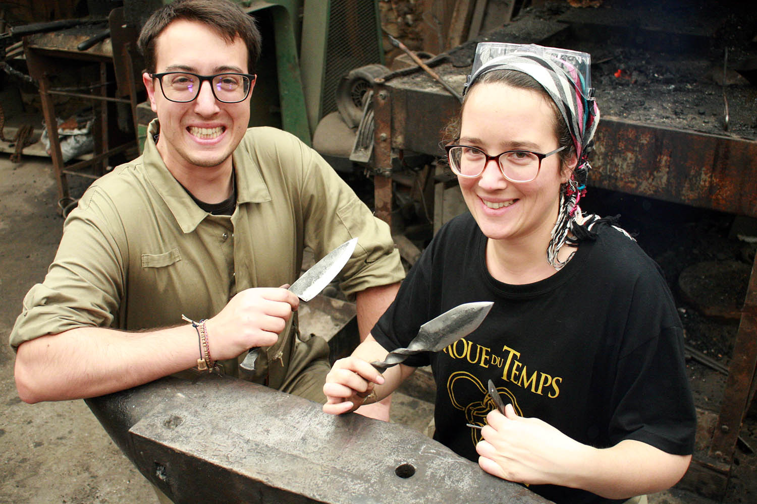 Stage de forge entre frêre et soeur. Complicité garantie ! Et forge de 2 superbes couteaux sacrément originaux