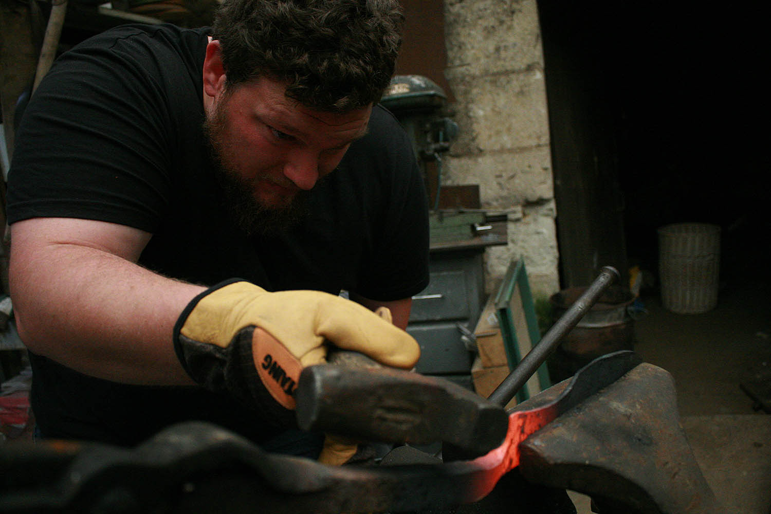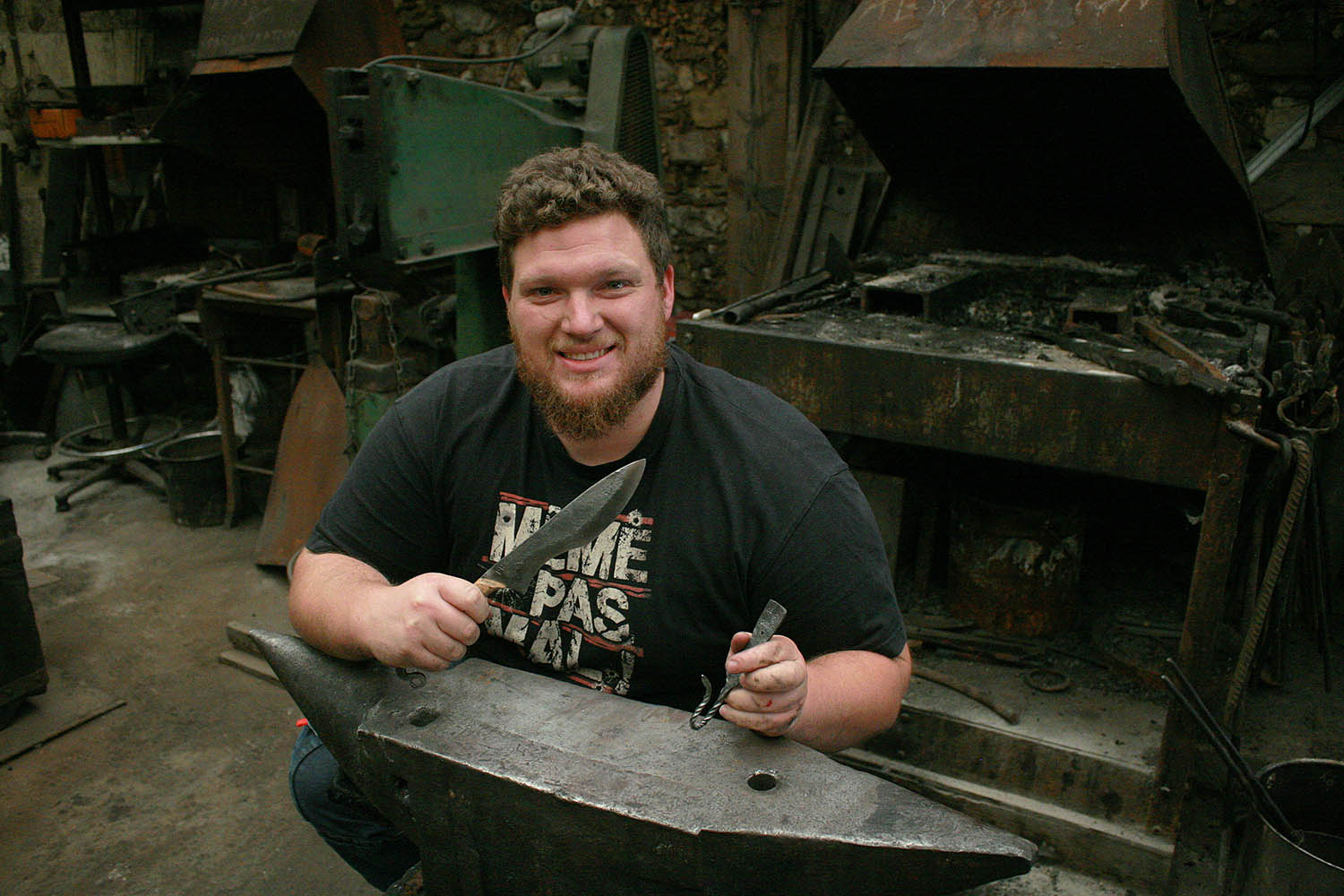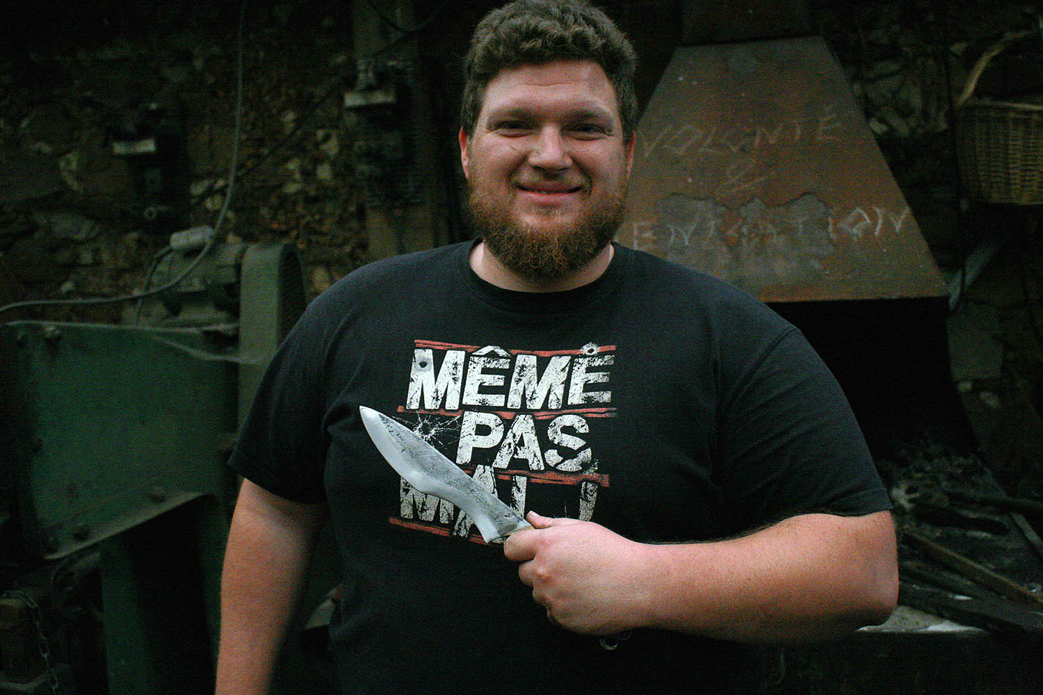 Envoyé en stage de forge par sa compagne, Rémy est vennu plein d'enthousiasme s'essayer au son du marteau et de l'enclume. Au programme, une tres belle lame et un bois superbe !
