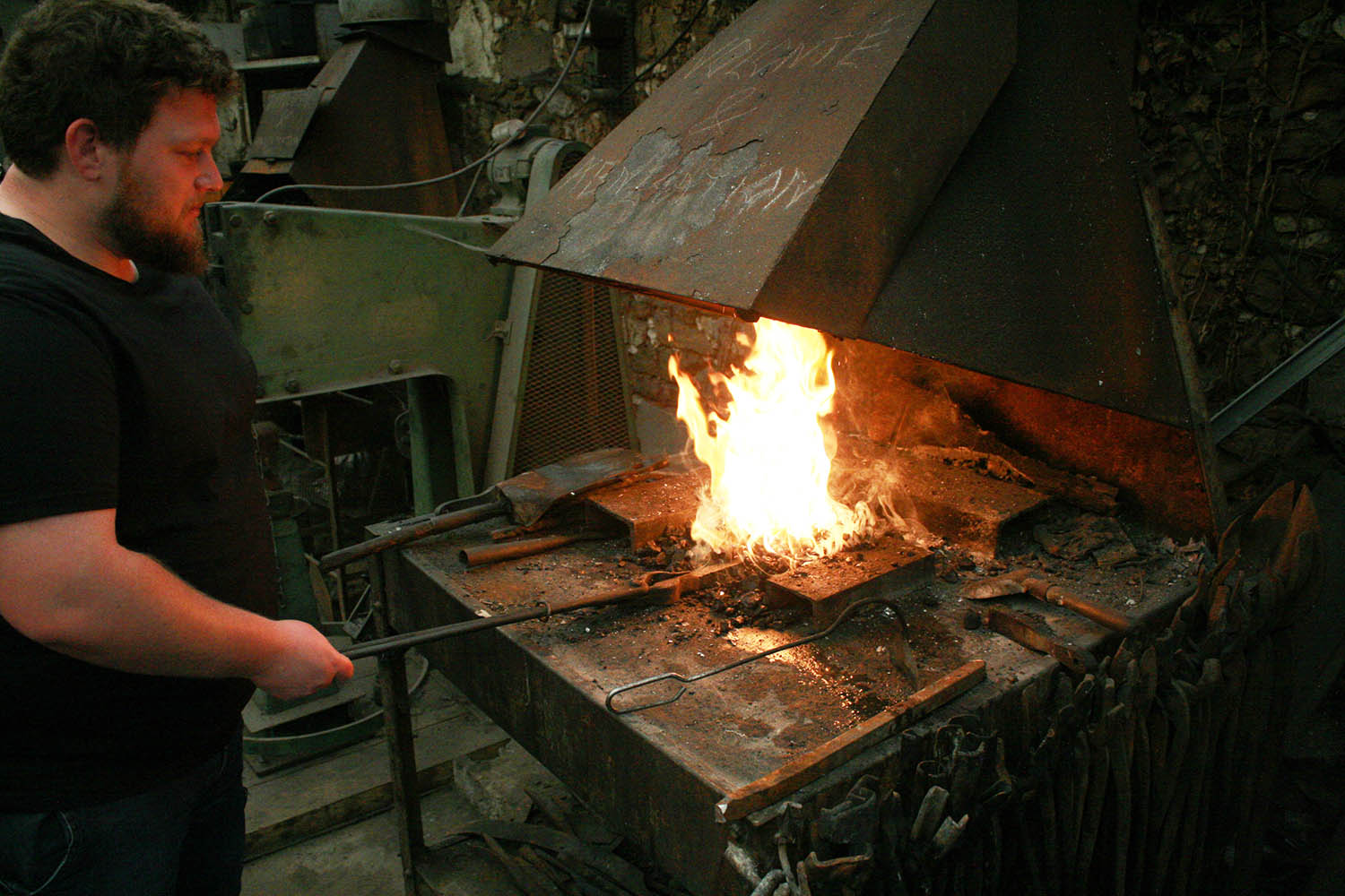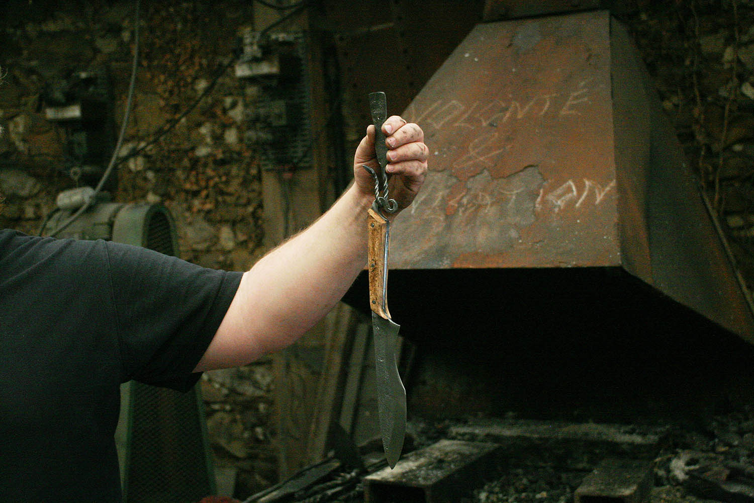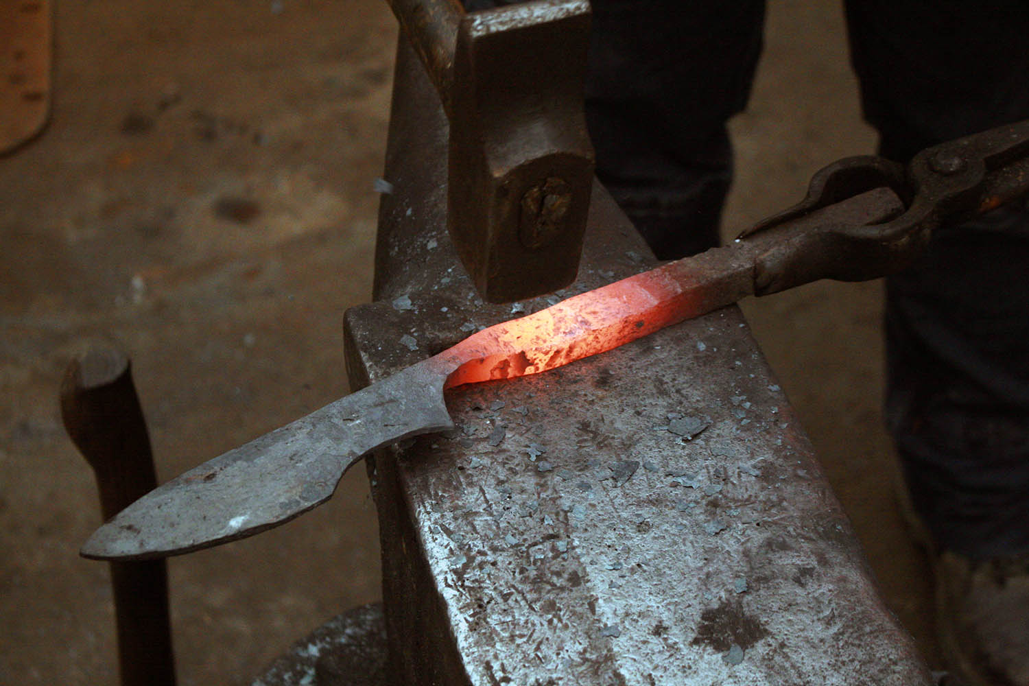 Envoyé en stage de forge par sa compagne, Rémy est vennu plein d'enthousiasme s'essayer au son du marteau et de l'enclume. Au programme, une tres belle lame et un bois superbe !