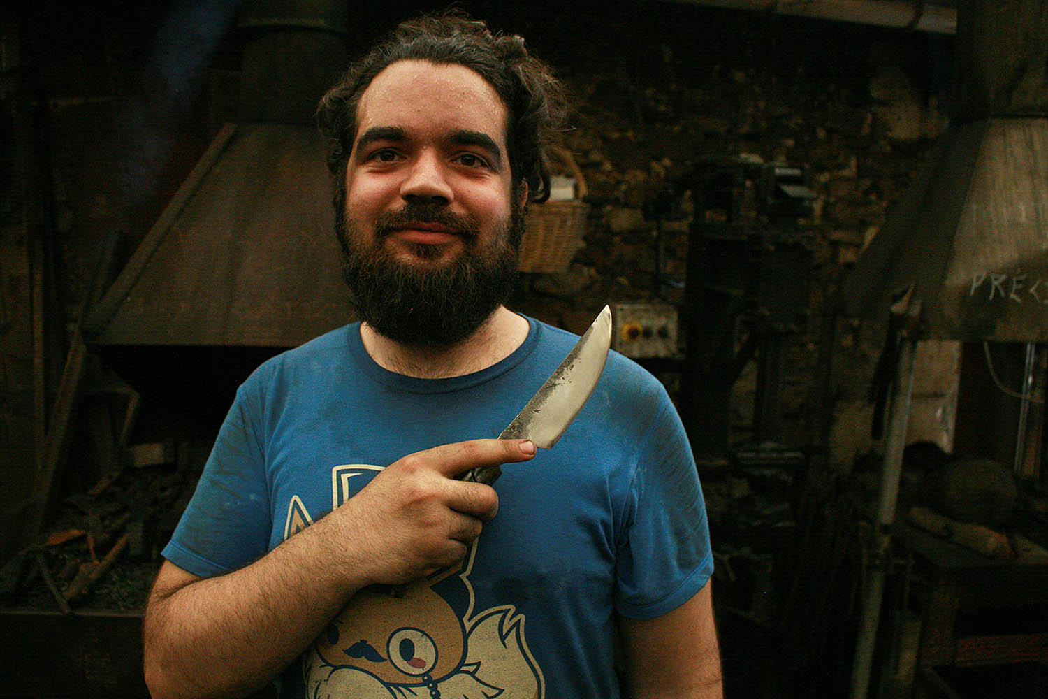 Second passage pour Julen qui est venu avec Gilles. Un tres bon stage de forge sur un couteau enroulé. Une première pour moi comme pour eux.