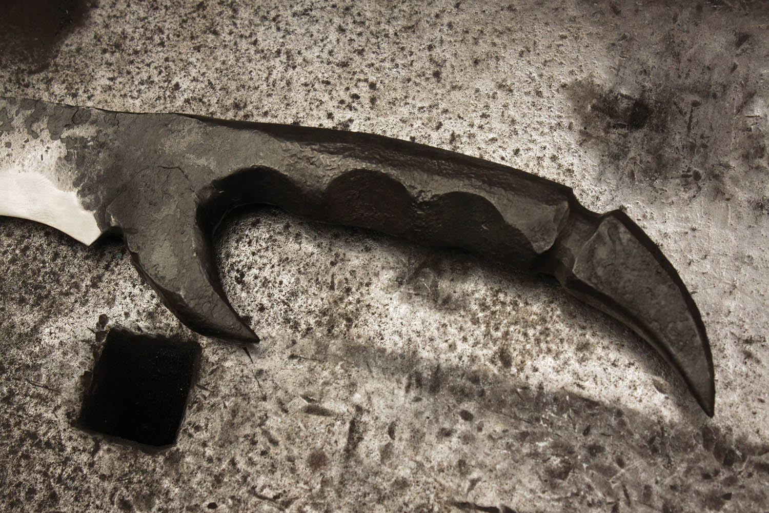 En voila une lame originale ! Un Kikoup Orruk inspiré par Age of Sigmar. Anthony voulait améliorer sa technique de forge, et bien la on a up le niveau !!!