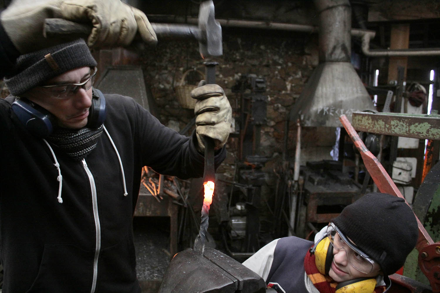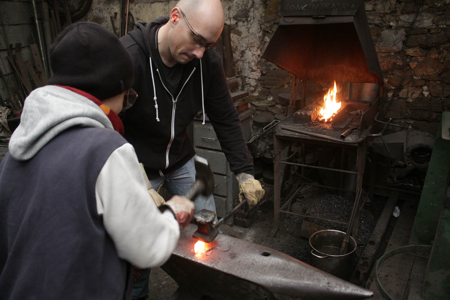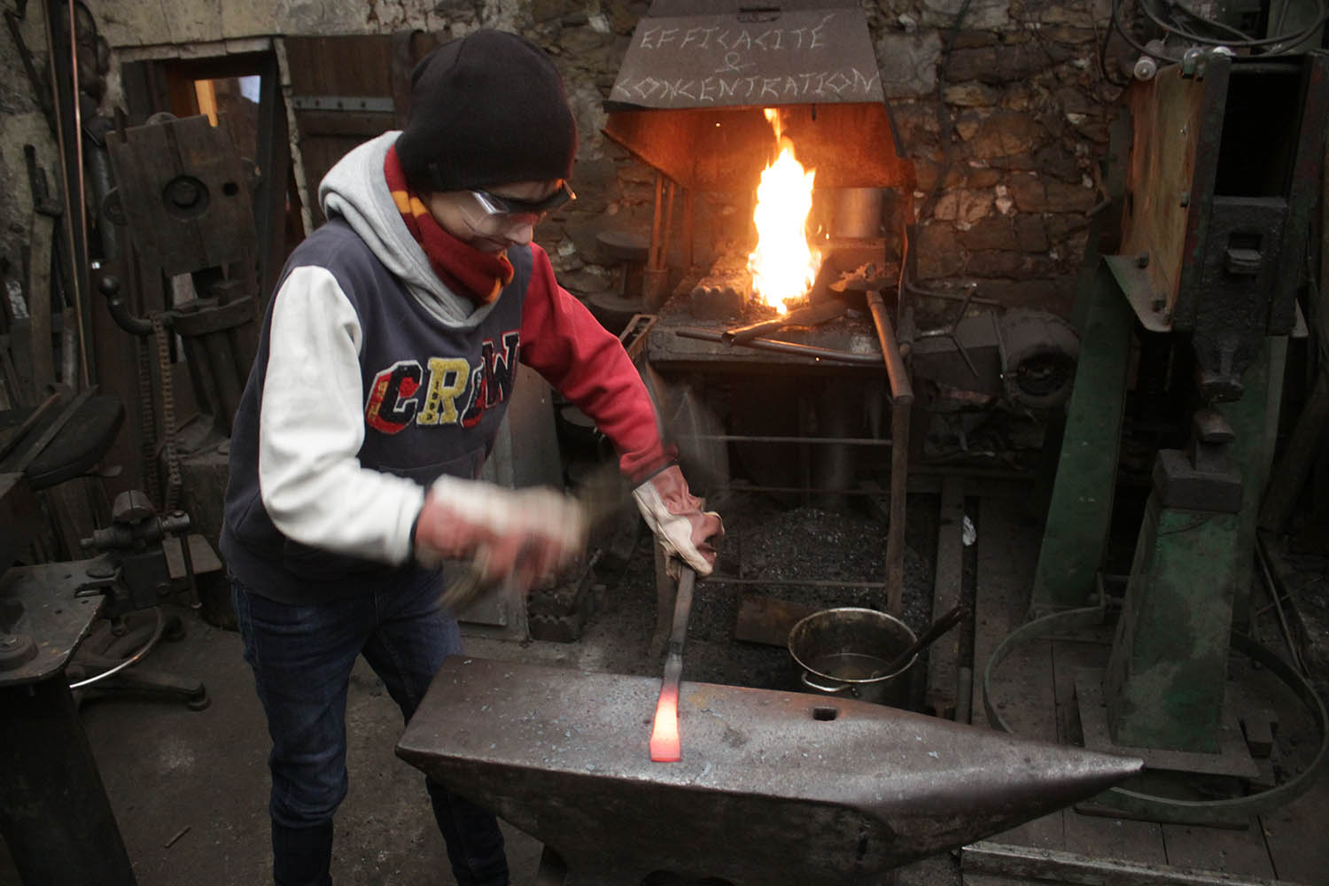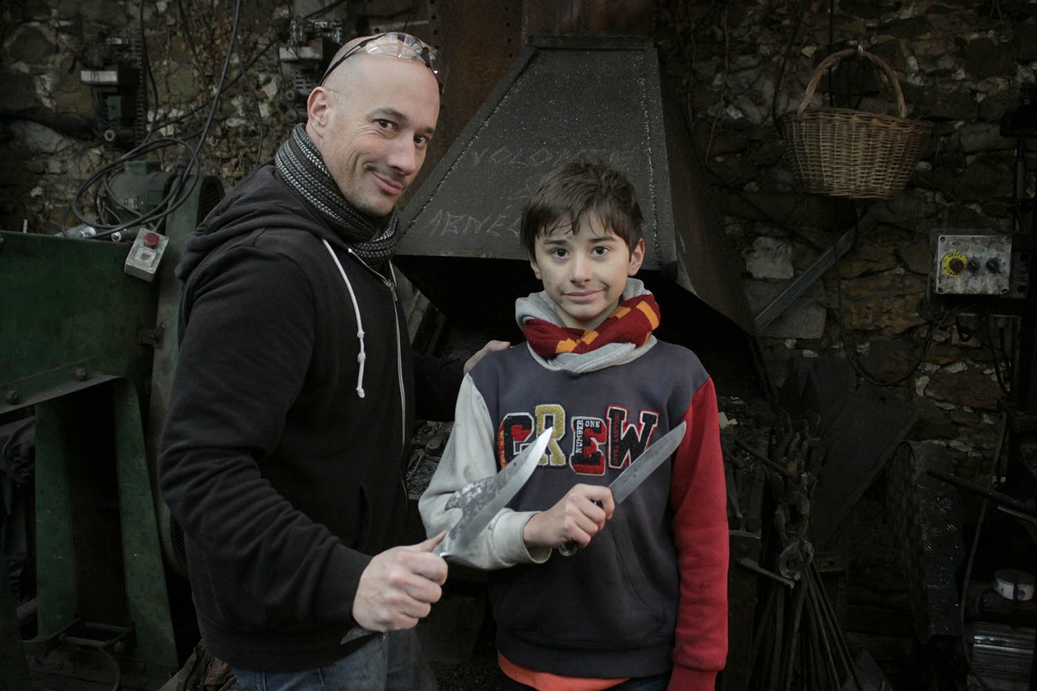 Père et fils en stage de forge, voila un programme qui envoi du lourd. Ce couteau requin et ce brut de forge sont terribles les amis !