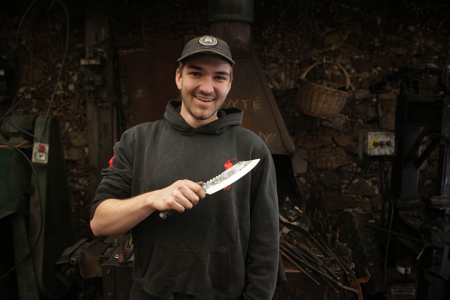 Cadeau de la part de ses parents , Fantin est un touche à tout talentueux. Ce couteau brut de forge tout en ''subtilité'' est un regal de forge.