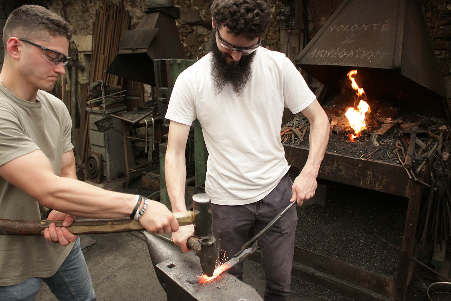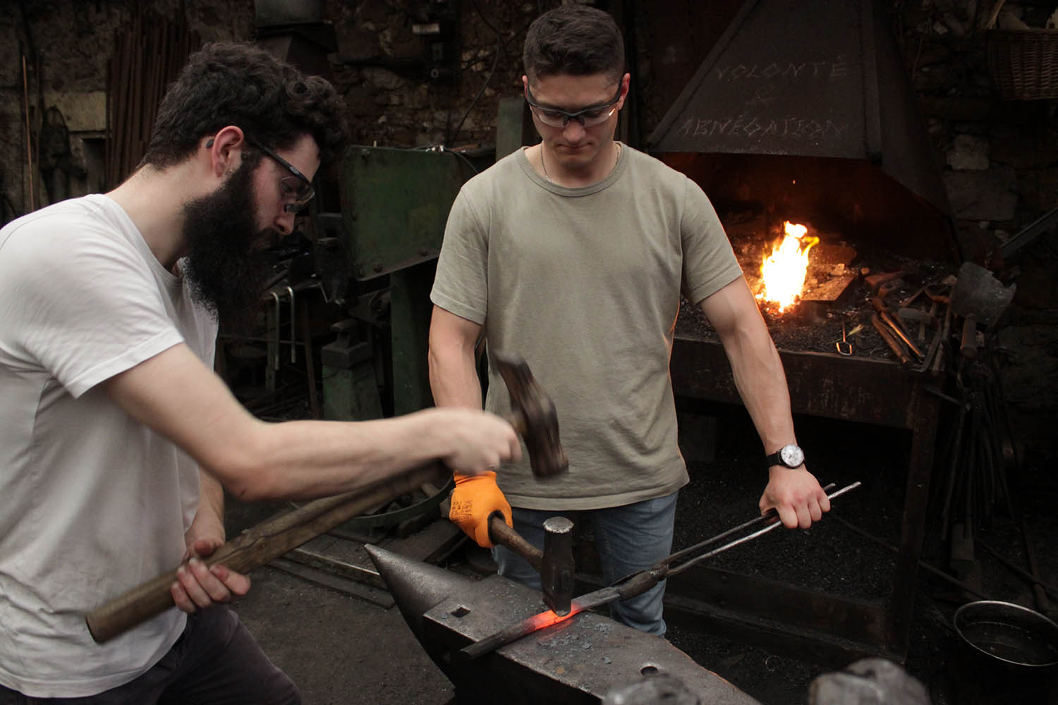 2 frères pour 2 couteaux. Voila un stage de forge parfait avec 2 jeunes gars bien motivés