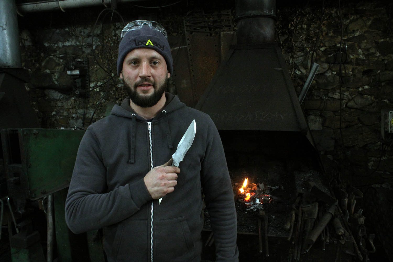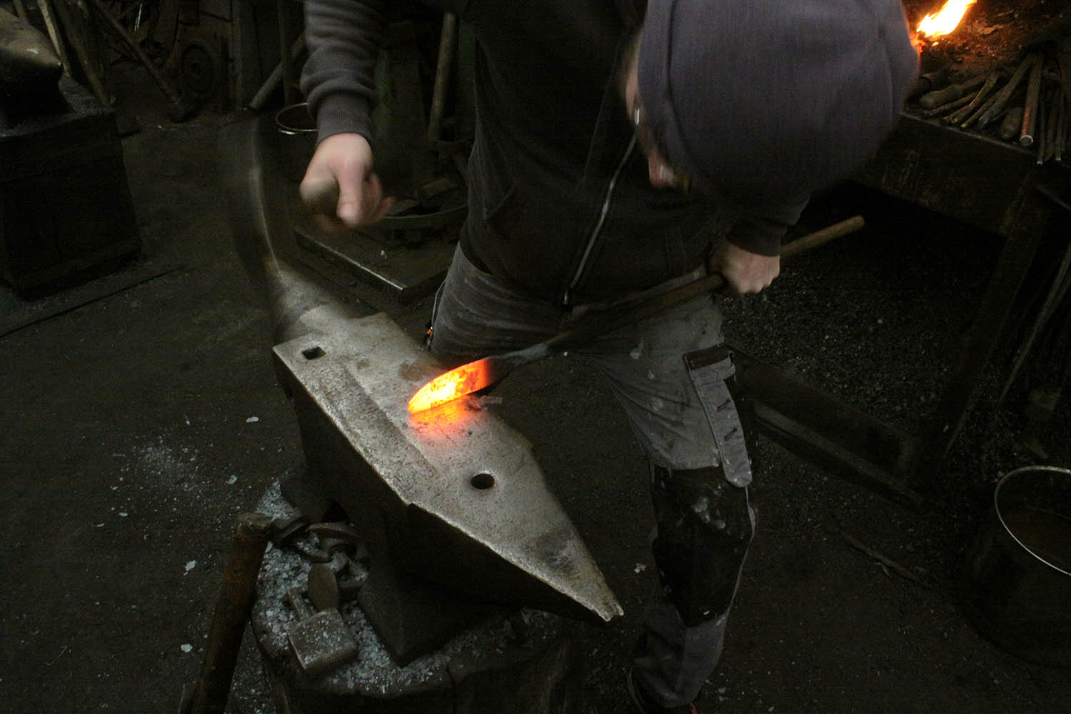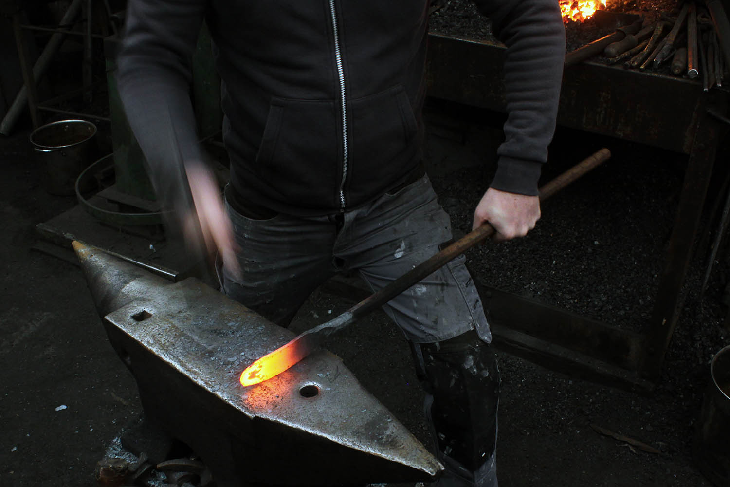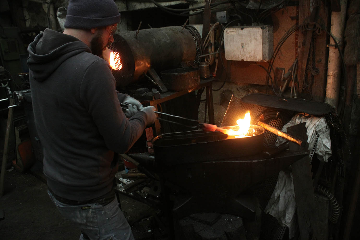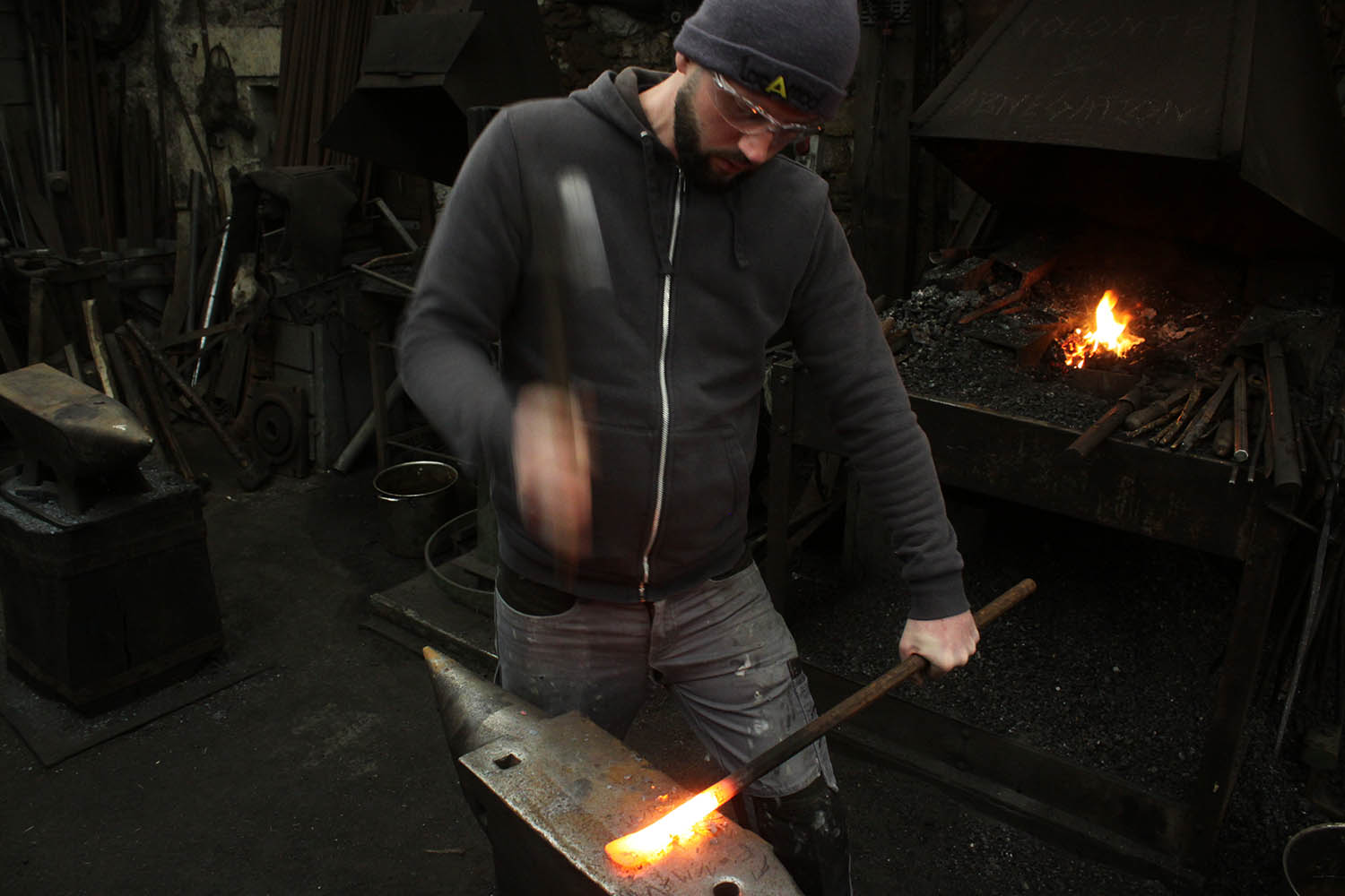 Artisan chevroné, Romain est passé par le feu et la famme pour réaliser ce magnifique brut de forge en stage. Et merci pour la porte l'ami :)