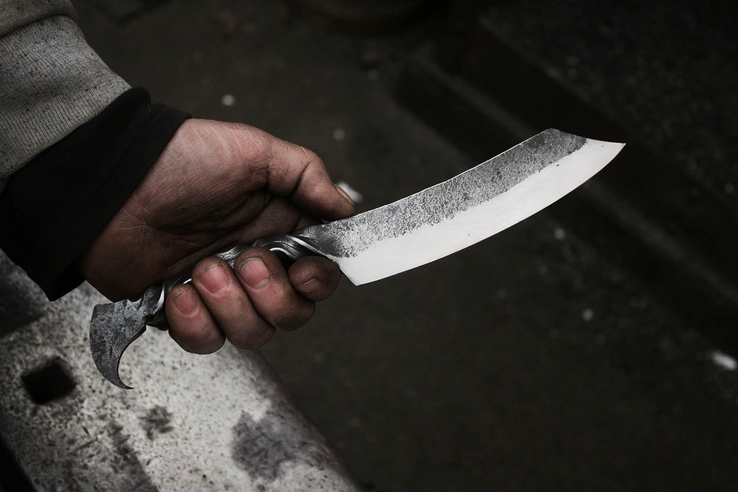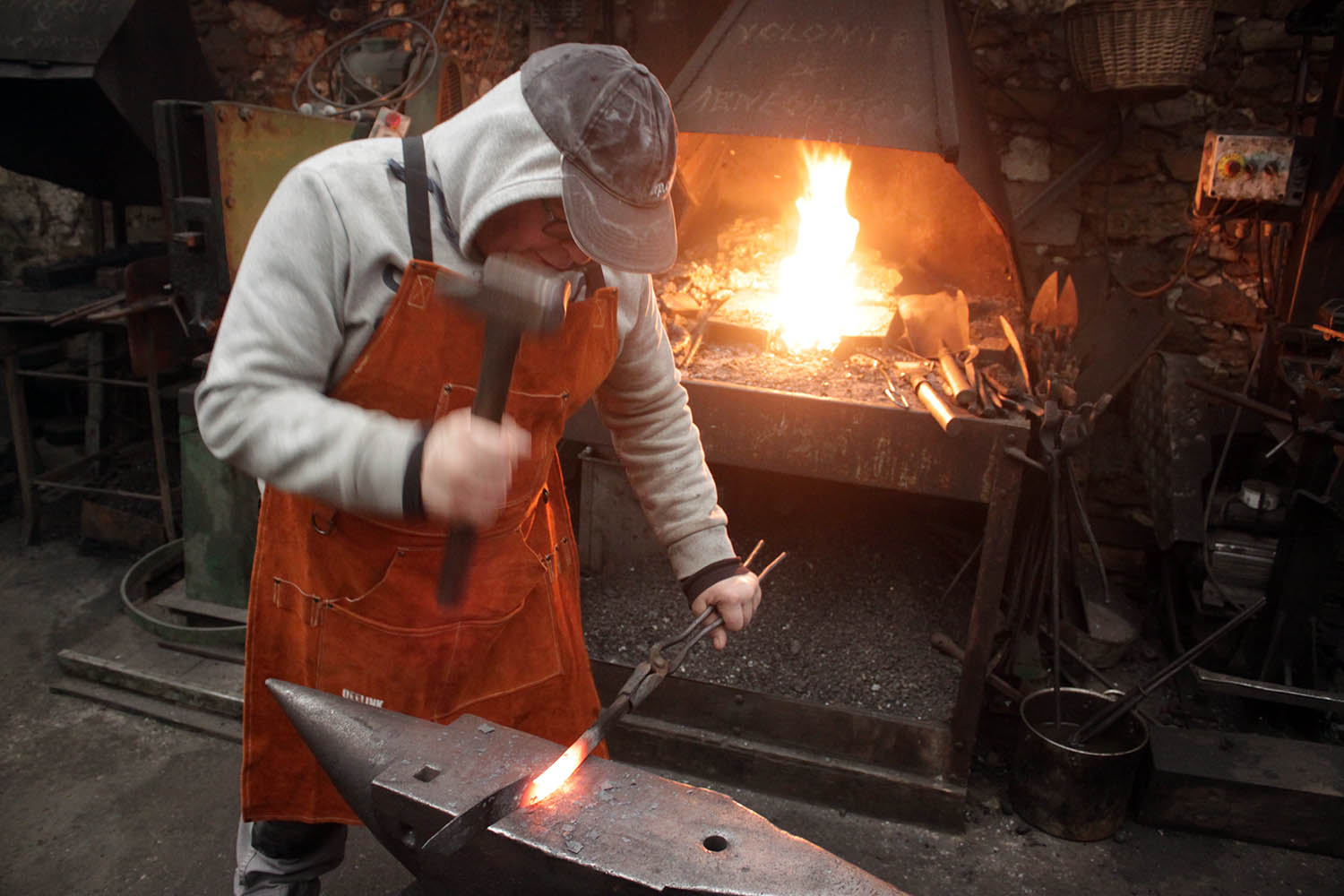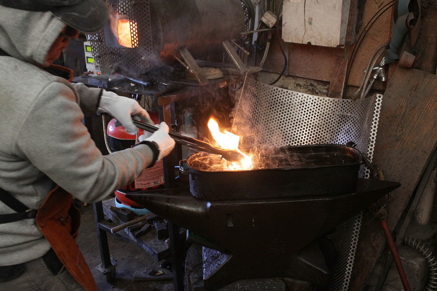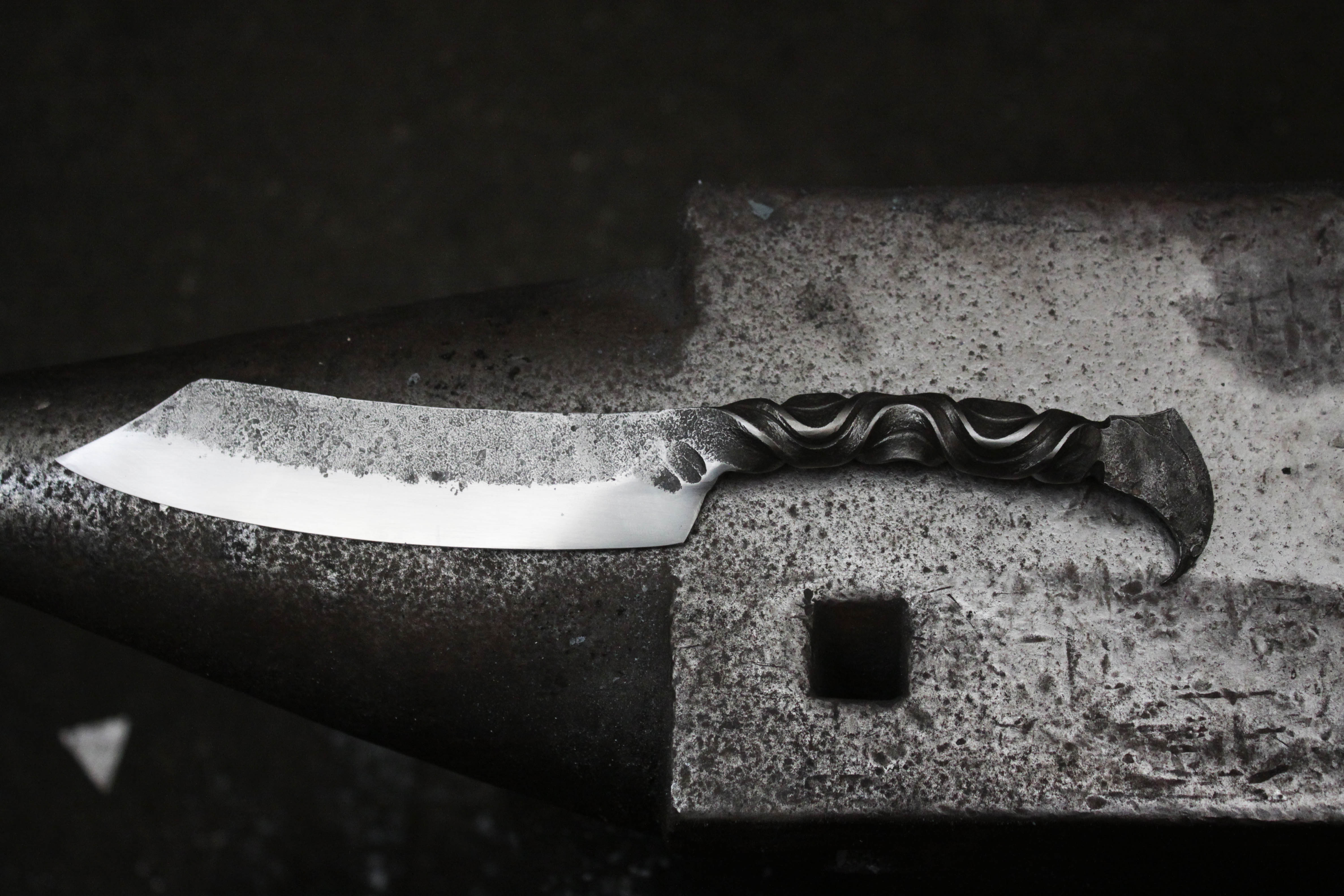 Spécialiste de la métallerie très lourde et de l'acier maxi épais, Thierry a découvert l'acier trempé et le travail à l'enclume.