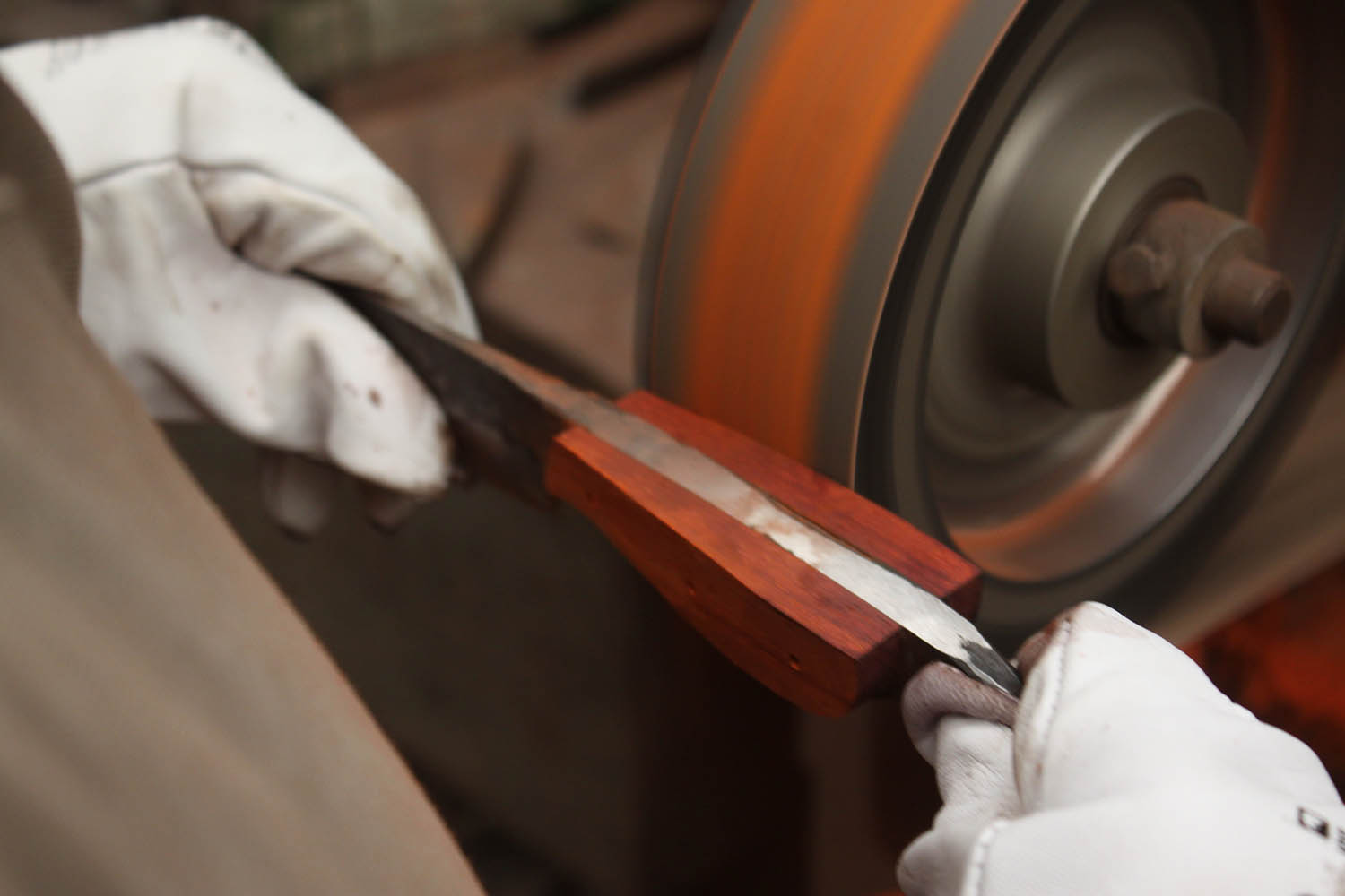 Lame de type bowie avec manche en padouk pour un brut de forge bien au top.