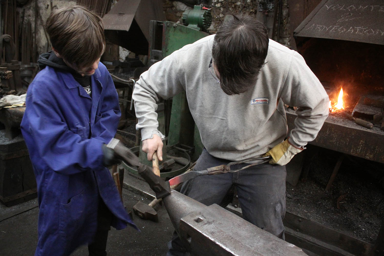 Stage de forge pour père et fils. Un bien beau couté forgé tout en maitrise et en classe