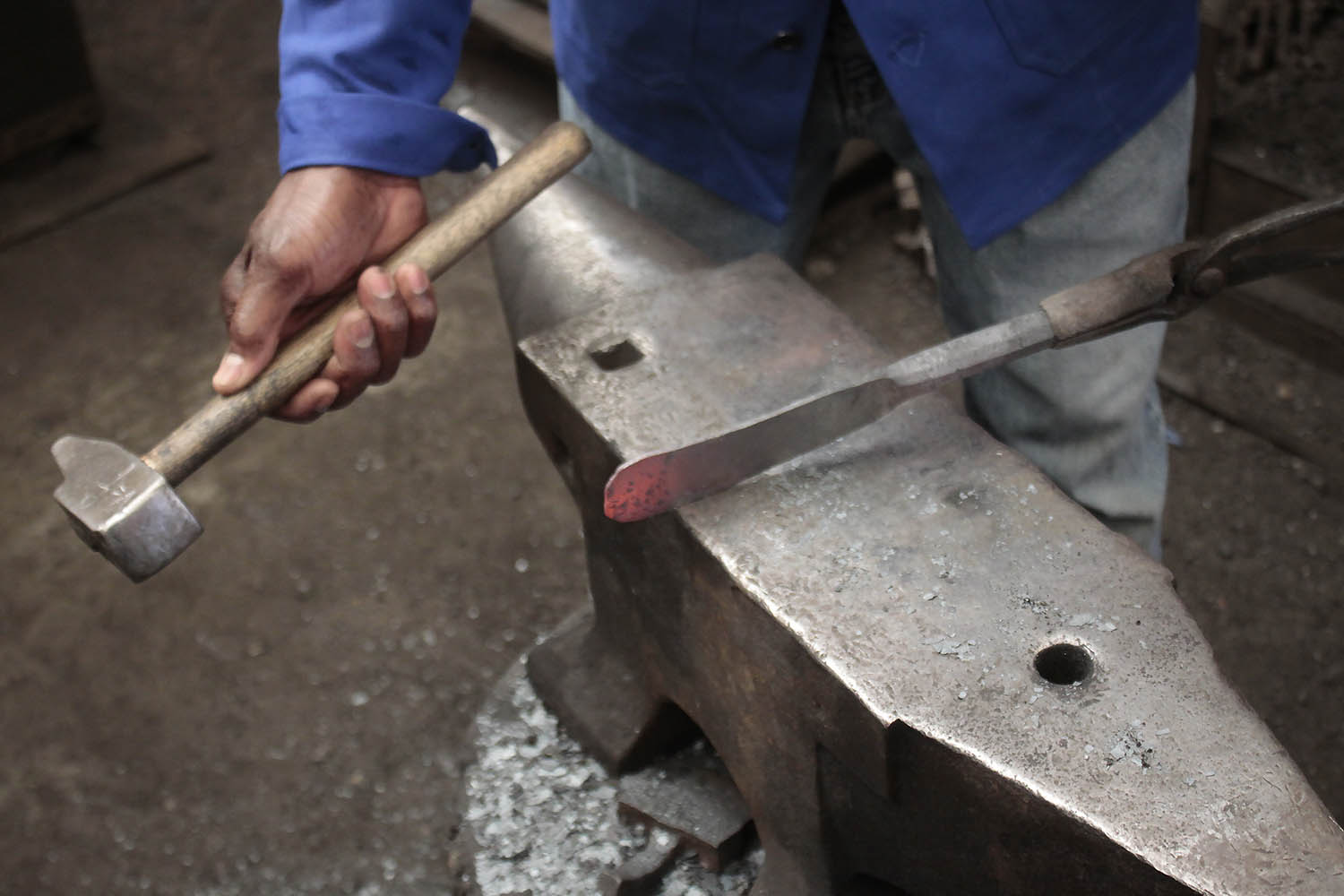 Maintenant retraité sa famille à offert à Kouamé ce stage de forge pour faire sonner les enclumes. Au programme, un énorme hachoir pleine masse. bien joué l'ami.