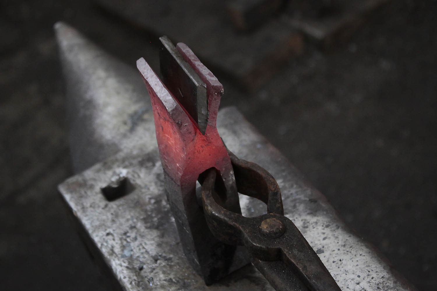 Denis a fait son premier stage de forge sur cette hache d'inspiration très "naine" style LoTR.