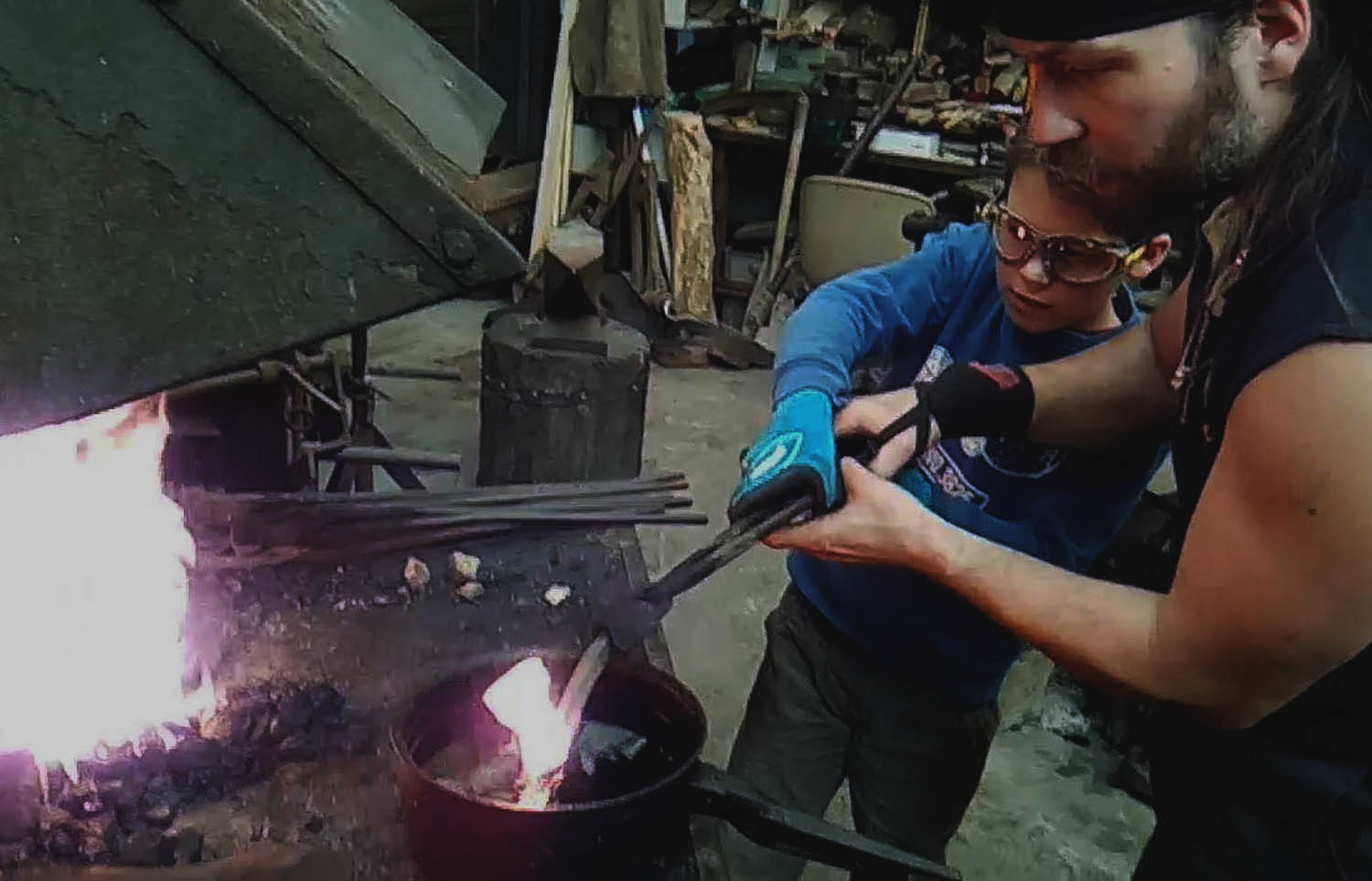 Le papa d'Abel était déjà passé à la maison pour s'essayer à la forge; En admirant le travail de son papa, Abel à souhaité lui aussi réaliser son couteau.