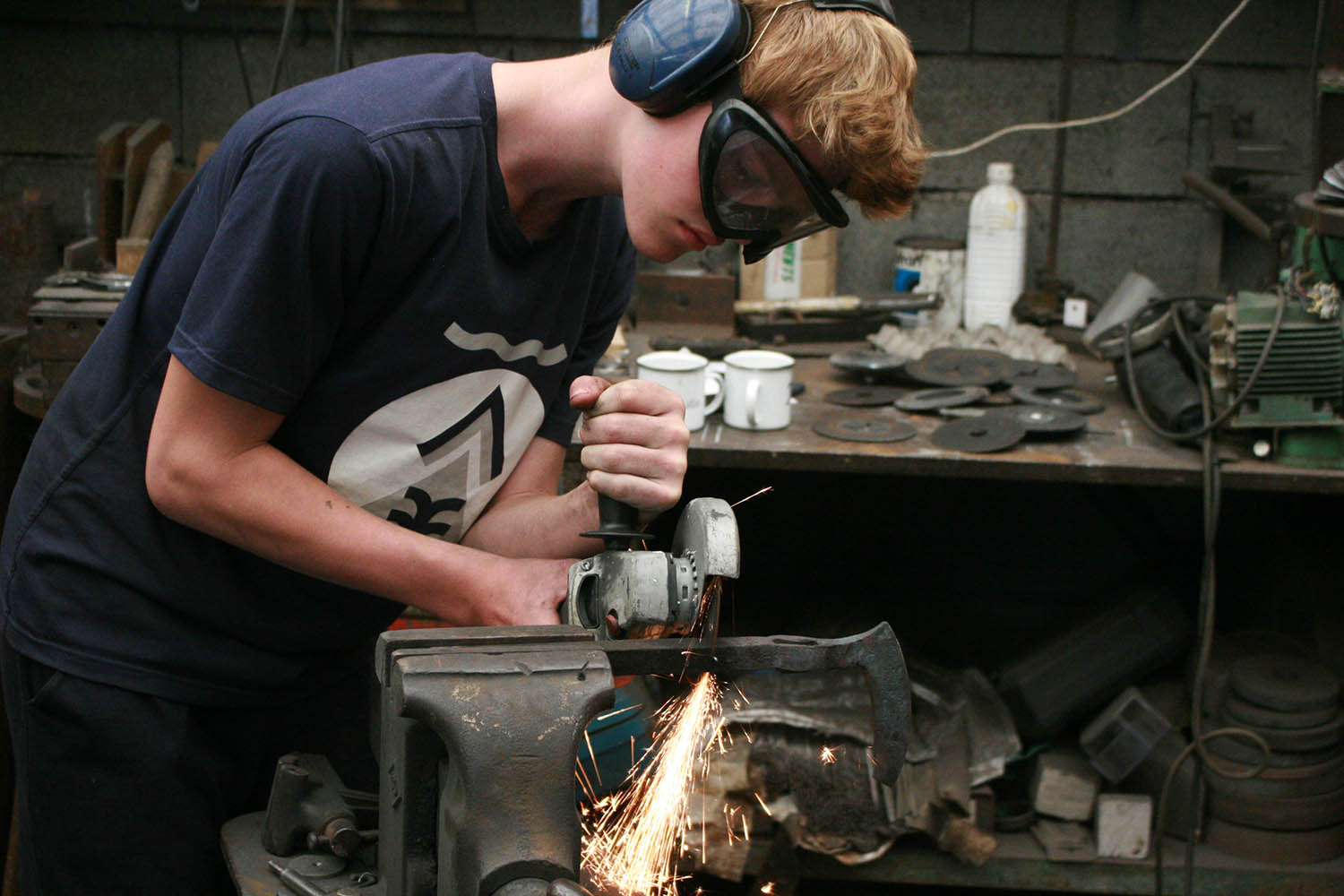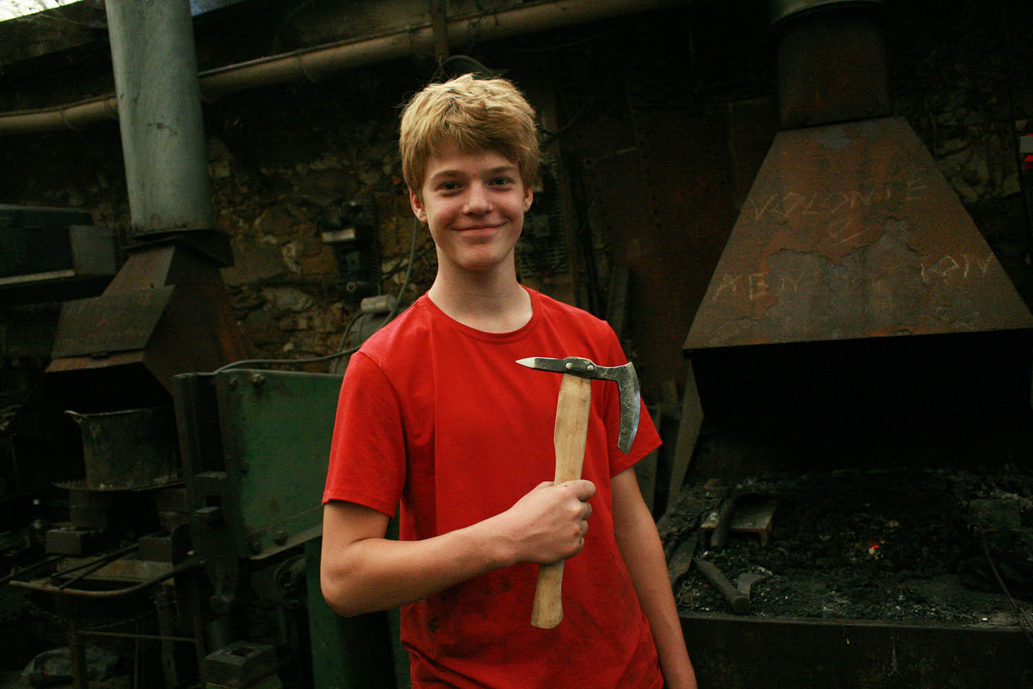 Et c'est reparti pour Max ! Apres un premier passage à l'atelier et la réalisation d'un gros couteau brute de forge, on a fait cette fois une grosse hache forgée bien fun pour son anniv' !