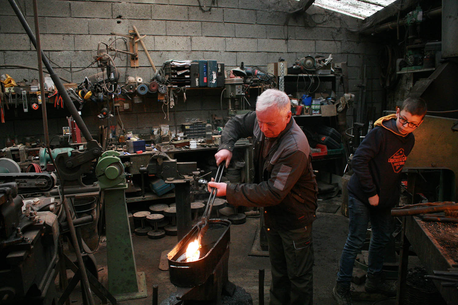 Grand Pére et Petit fils, ça c'est top. Un magnifique moment pour un jeune forgeron desireux de se lancer dans la forge aidé par son grand père.