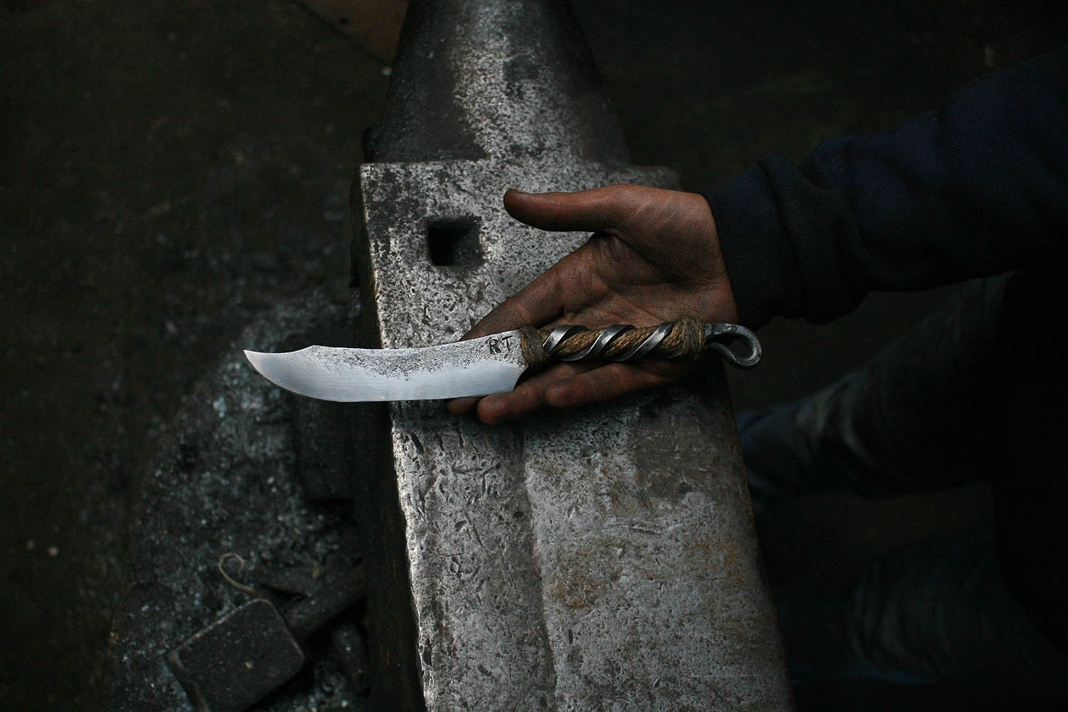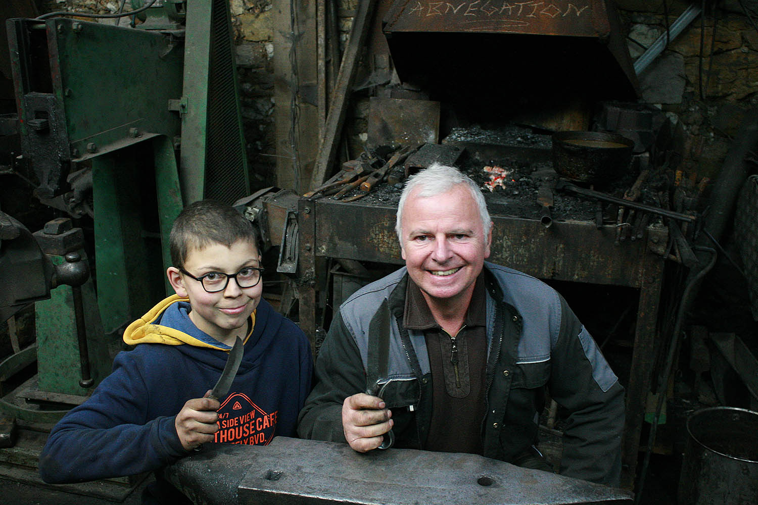 Grand père et petit fils pour un superbe stage de forge. Au programme, 2 couteaux brut de forge pour une belle première experience.