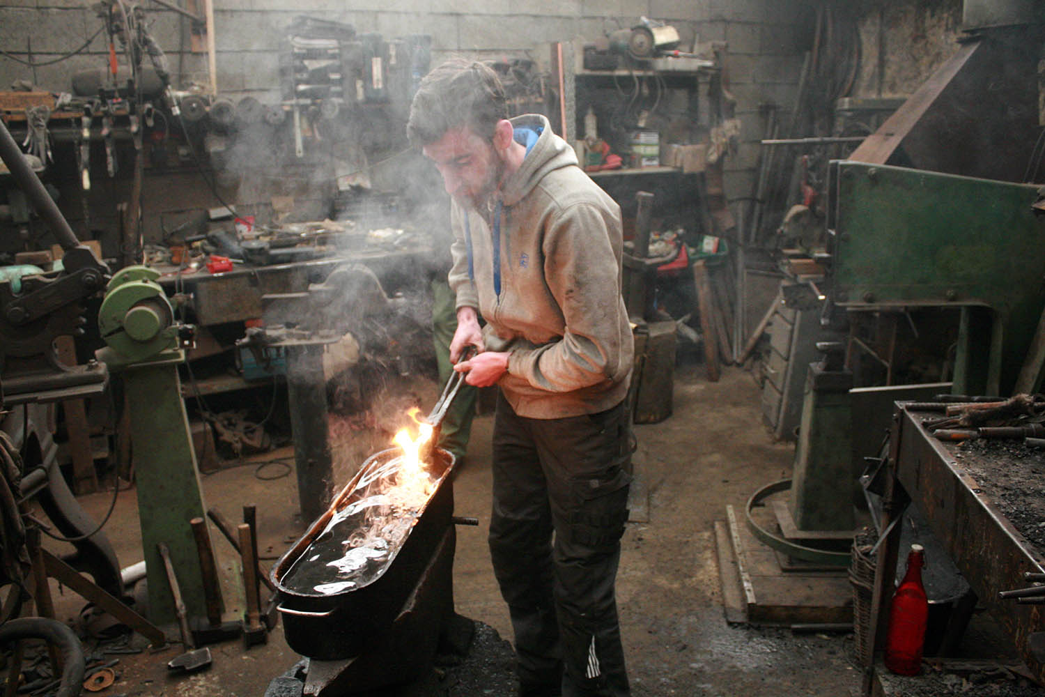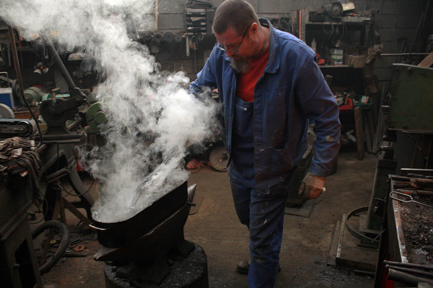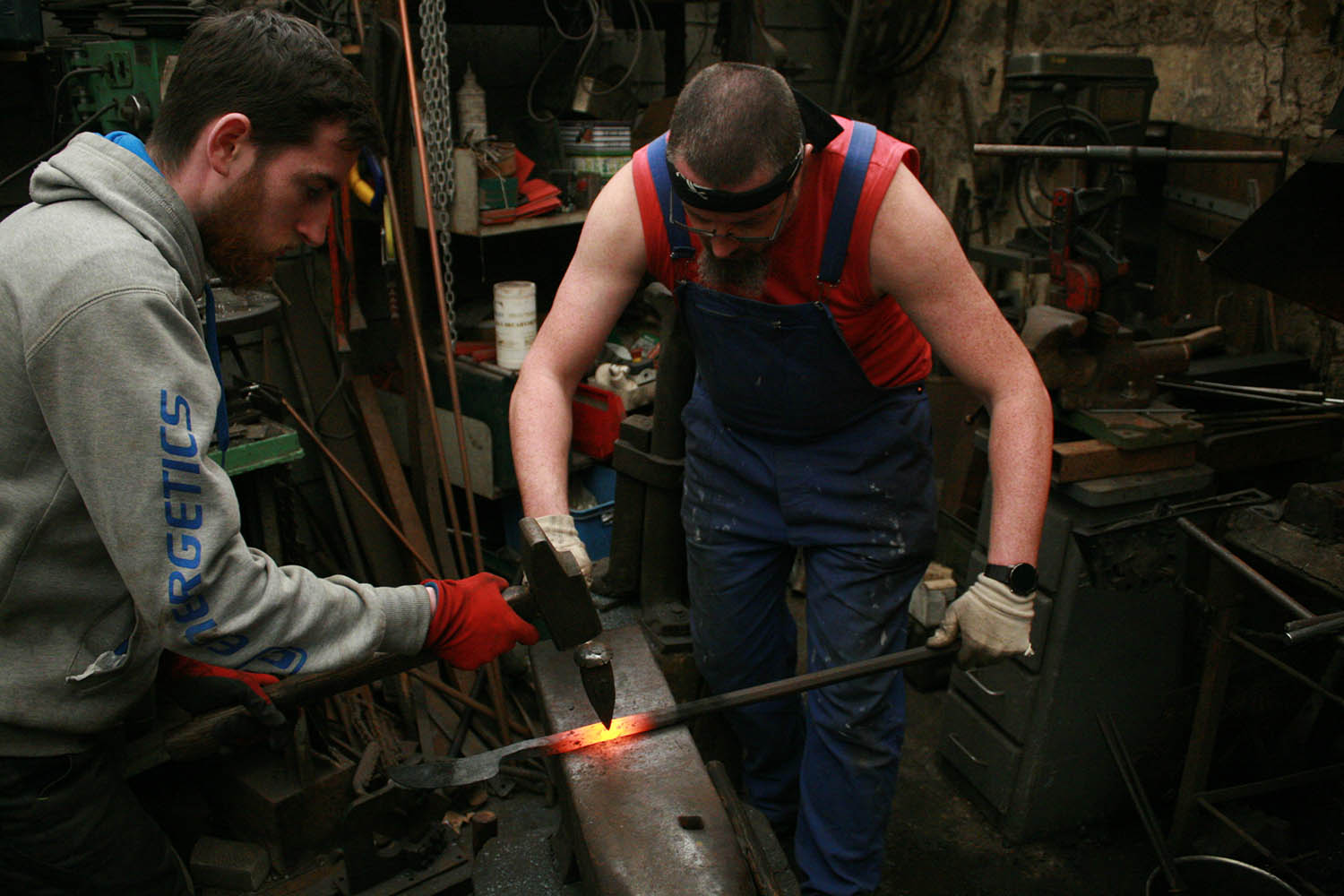 Une famille, voila qui est funky à la forge. Et la c'est tout un clan ! Grand-père, fils, et 2 petits-fils. Un sacré moment de rigolade et de travail. Intense et parfait, avec un soupçon de poire.