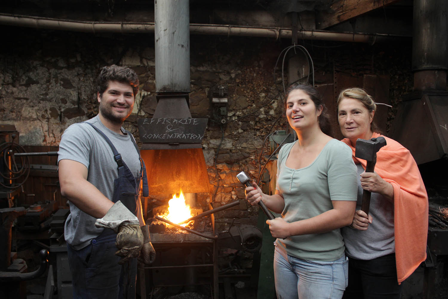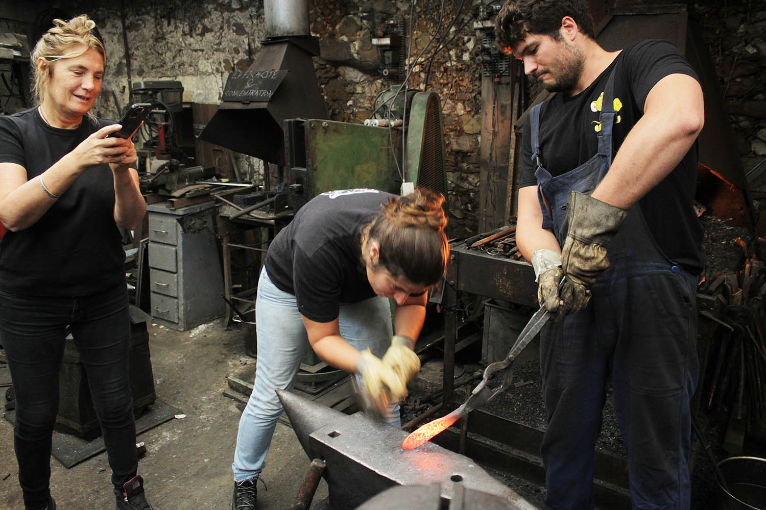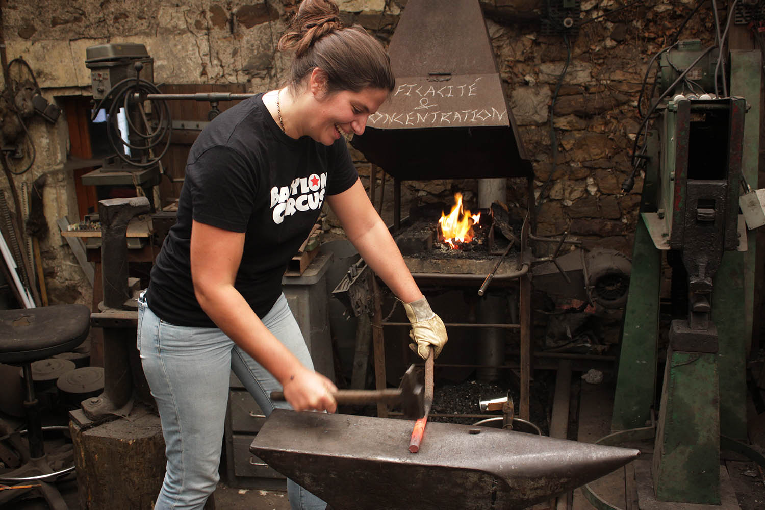 Indiana est passée à la forge avec son frère et sa mère. Un superbe moment autour des enclumes. Travail et rigolade, voila ce qui est genial.