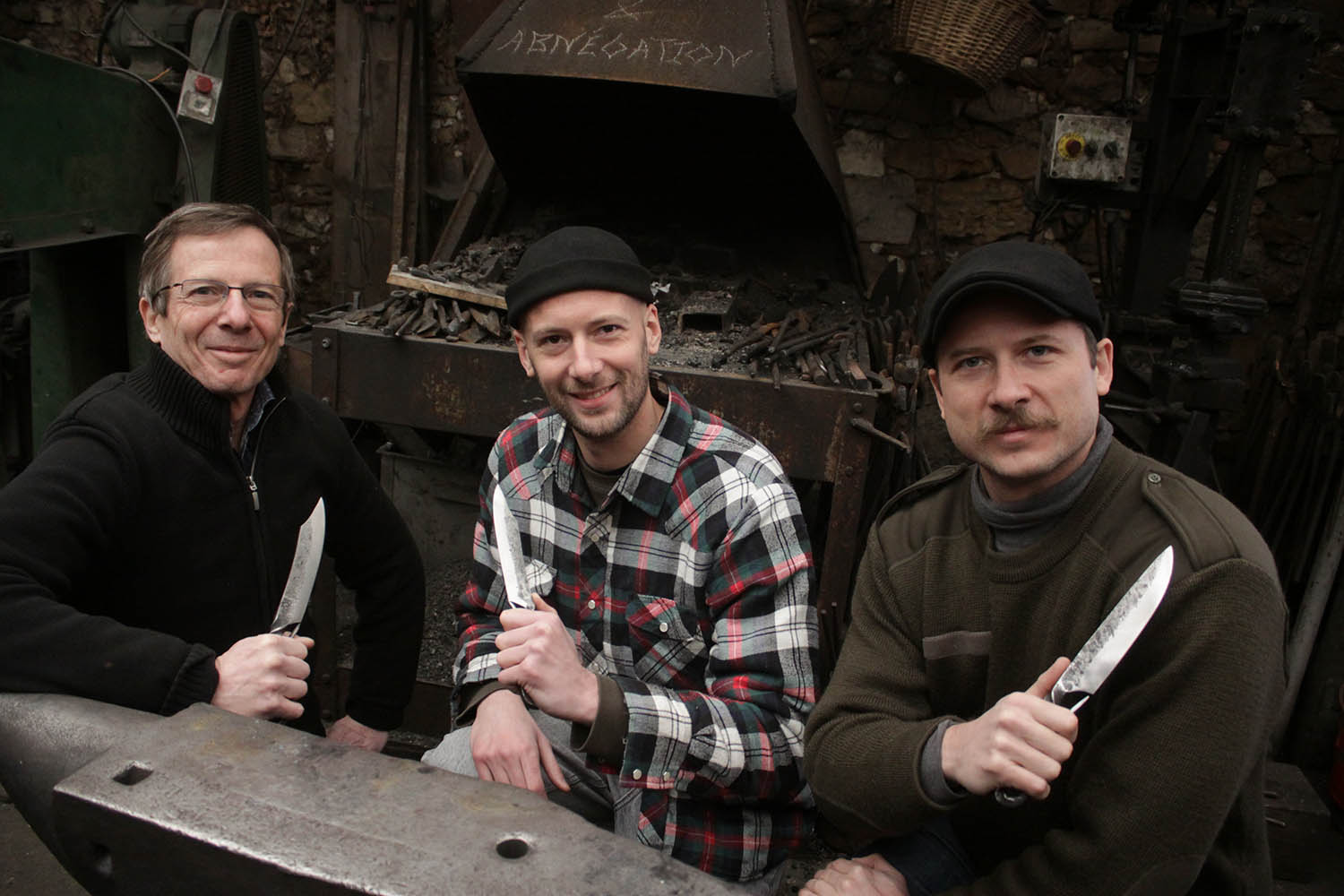 Quand un pere et ses fils decident de passer forger, ca donne 3 superbes couteaux brut de forge. Un tres beau moment de partage et d'échange.