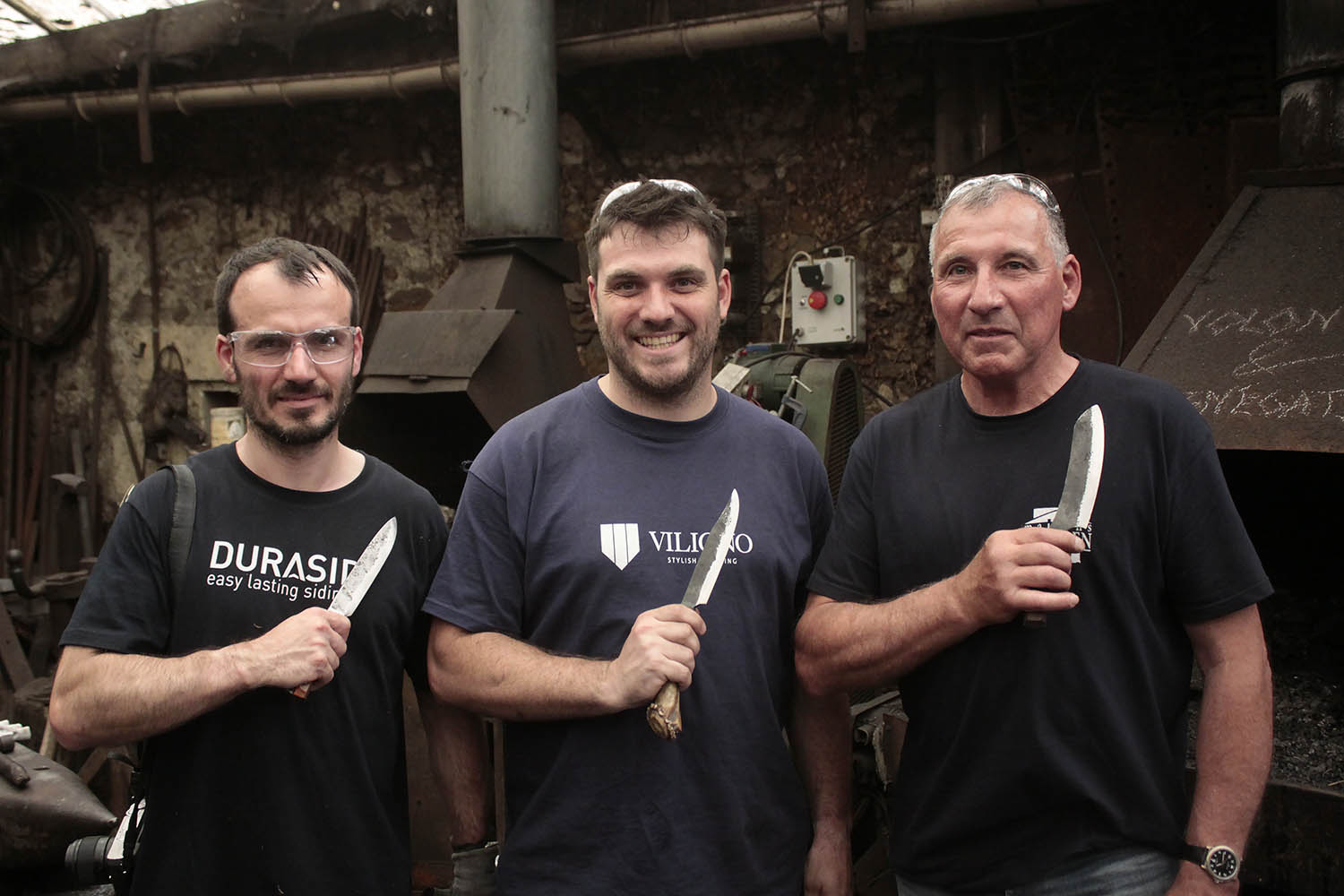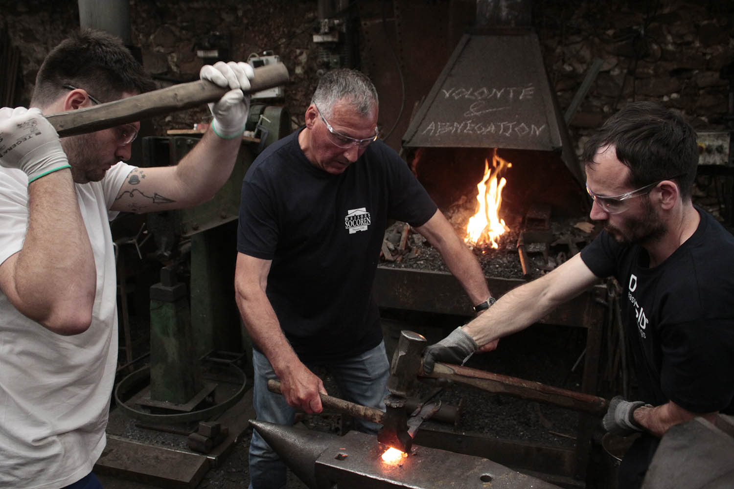 Toute une famille en stage de forge, pour 3 couteauxw forés tres differents c'est une experience unique.